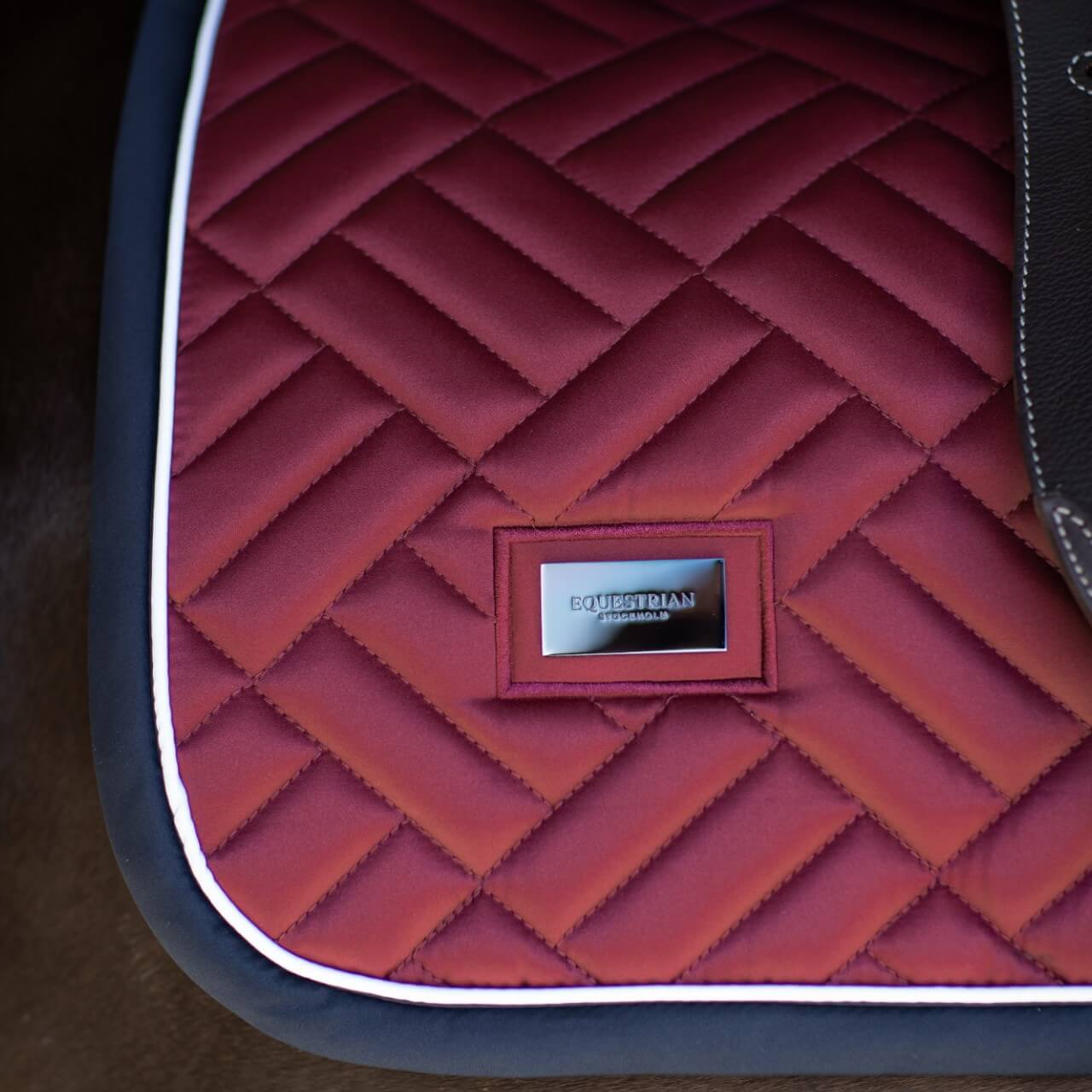 Springschabracke Modern Luxe Schabracke von Equestrian Stockholm bietet dir das perfekte Zusammenspiel von edlem Design und innovativer Technik. Diese Schabracke sorgt für höchsten Komfort bei Spring- und Vielseitigkeitsreiten und setzt mit ihrem luxuriösen Cold Deep Red-Finish ein modisches Statement.