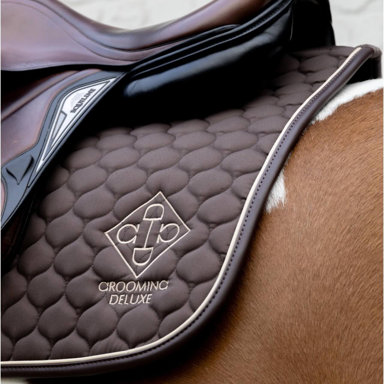 Die Grooming Deluxe Schabracke überzeugt mit ihrem eleganten Onion Quilt-Muster und den neutralen Farben Beige und Braun. Diese zeitlosen Töne machen die Schabracke zu einem vielseitigen Begleiter auf dem Reitplatz. Das dezente Markenlogo verleiht dem Design eine zusätzliche Note von Raffinesse und unterstreicht den hochwertigen Look.