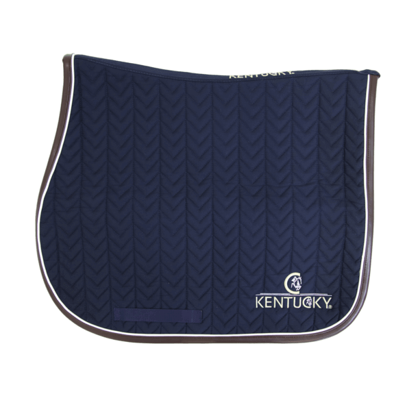 Die Springschabracke besticht durch ihre einzigartige Fischgräten-Steppung, die nicht nur ein visuelles Highlight bietet, sondern auch für zusätzliche Stabilität sorgt. Die edle Ledereinfassung und das dezente Kentucky-Logo verleihen der Schabracke einen luxuriösen Look, der auf jedem Turnierplatz beeindruckt.