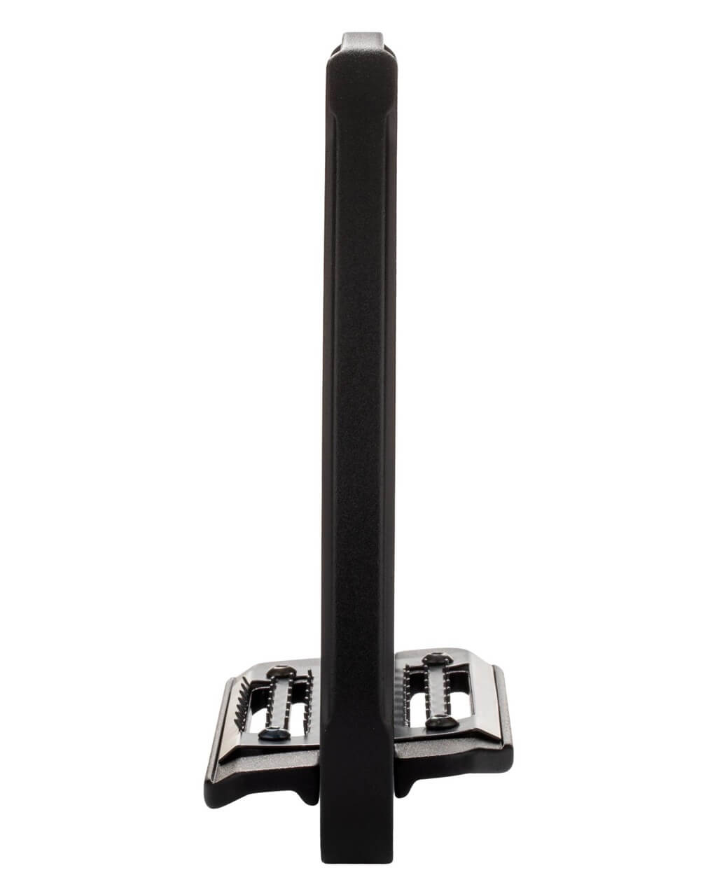 Das herausragende 180°-Öffnungssystem der Steigbügel Rel-X 180 gewährleistet maximale Sicherheit bei einem Sturz. Die Kombination aus Hightech-Metall und flexiblen Polymeren ermöglicht eine flexible und dennoch stabile Nutzung. Der geneigte Trittbereich mit einem integrierten Grip System sorgt für festen Halt, selbst bei widrigen Wetterbedingungen.