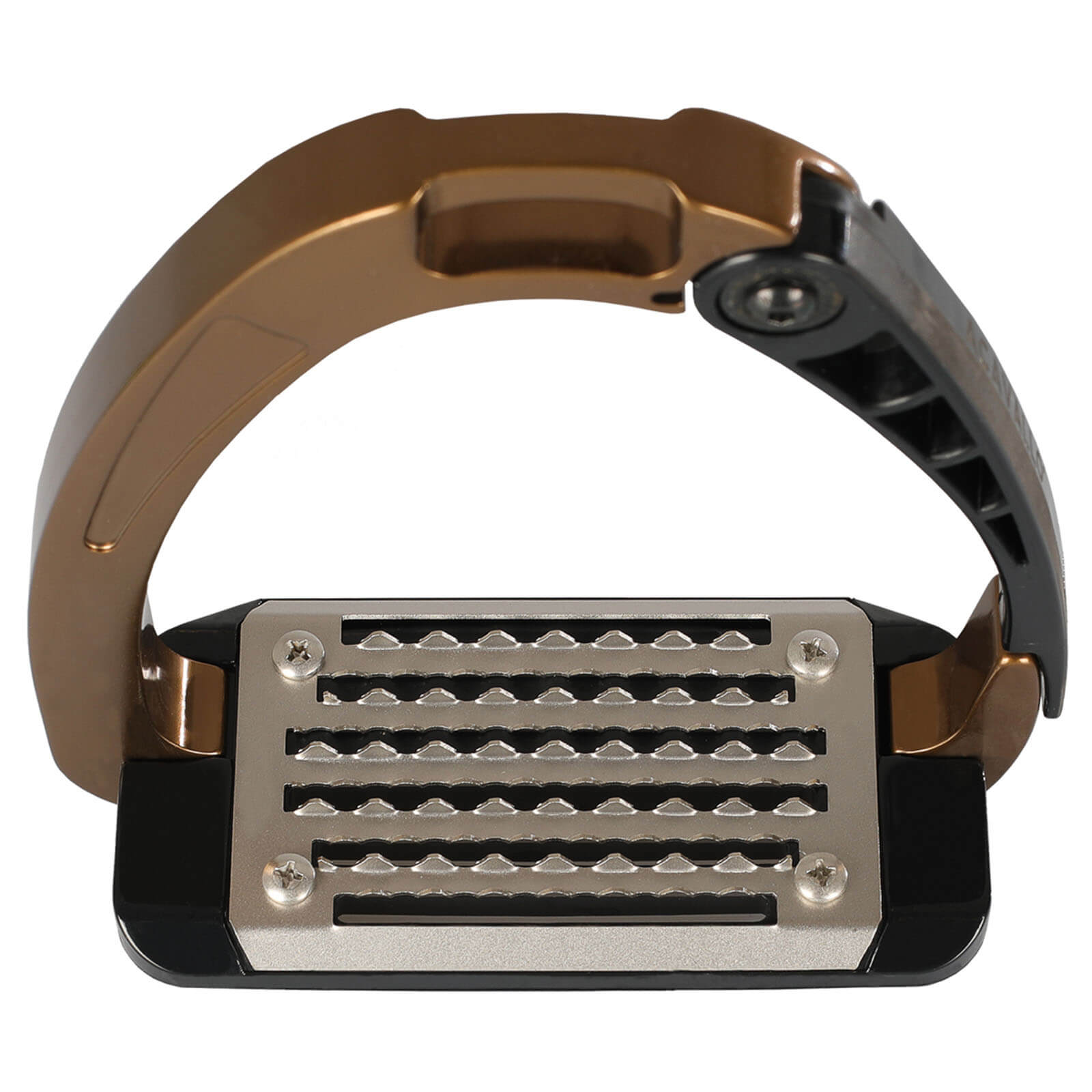 Die Sicherheits Steigbügel Arena Alupro sind in verschiedenen eleganten Farben erhältlich, darunter Roségold, Bronze und Total Black. Jedes Modell überzeugt durch seine edle Optik und passt sich nahtlos deinem individuellen Stil an. Durch die geschickte Verwendung von Aluminium wird nicht nur das Gewicht reduziert, sondern auch eine hohe Stabilität gewährleistet – ideal für jeden Reiter, der Wert auf Ästhetik und Funktion legt.