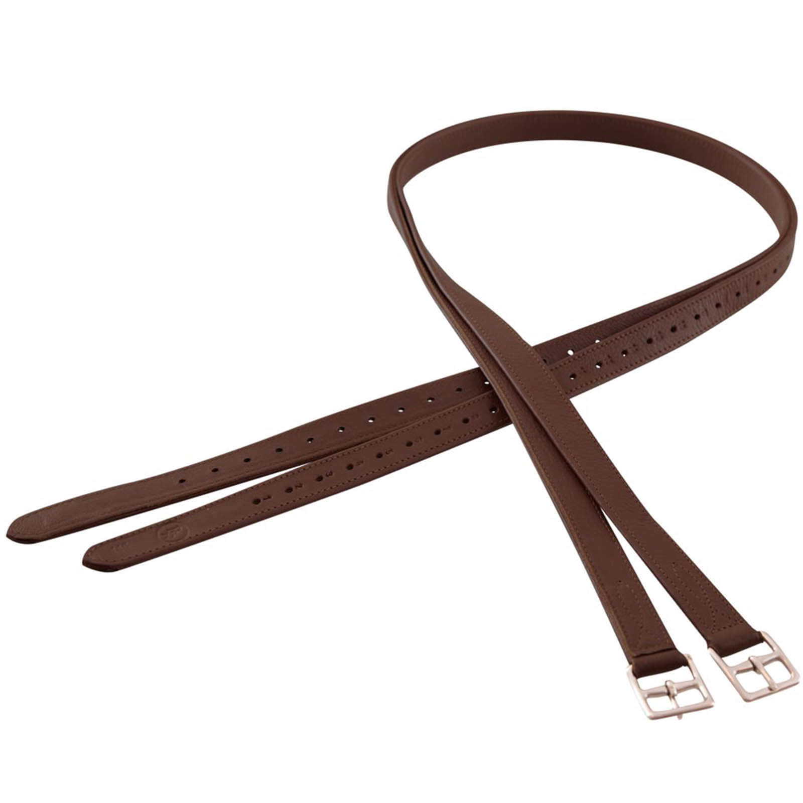Die Bügelriemen von BR überzeugen durch ihr ansprechendes Design aus weichem Kalbsleder in klassischen Farben wie Schwarz, Braun, Tobacco und Oak. Die leicht gebogenen, rostfreien Metallschnallen fügen sich nicht nur ästhetisch ein, sondern erleichtern auch das schnelle und sichere Verstellen der Riemenlänge. Ob auf dem Turnier oder beim Ausritt, mit diesen Riemen machst du stets eine gute Figur.