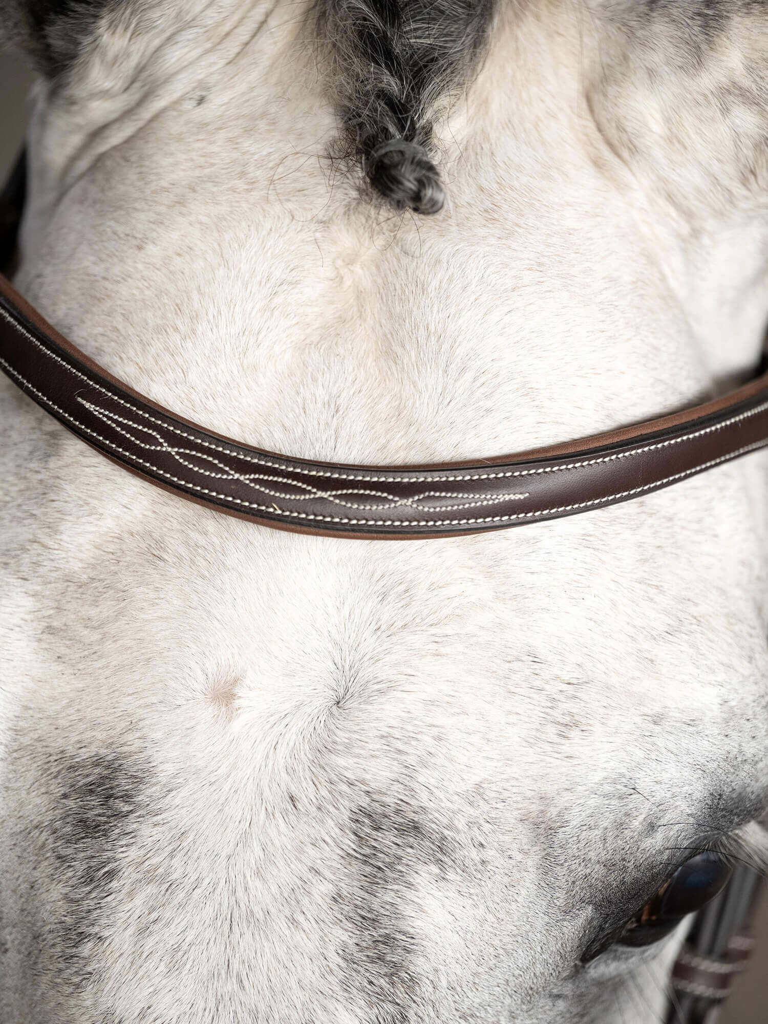 Die Trensenzaum Hunter Trense Ocala beeindruckt durch ihre edle braune Farbe und die kunstvollen weißen Ziernähte auf Stirn- und Nasenriemen. Diese optischen Merkmale verleihen dem Zaumzeug nicht nur einen ansprechenden Look, sondern sorgen auch für eine klare Linienführung. Die weiche Polsterung sorgt für zusätzlichen Komfort und unterstreicht die harmonische Verbindung von Design und Funktionalität.