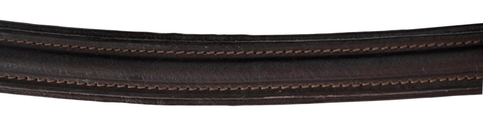 Der Trensenzaum besticht durch sein zeitloses Design in klassischem Schwarz und Braun. Der bombierte Nasenriemen sorgt nicht nur für einen ästhetischen Akzent, sondern auch für eine gleichmäßige Druckverteilung. Die edle Optik wird durch die sorgfältige Verarbeitung des Leders abgerundet, was nicht nur visuell, sondern auch im täglichen Einsatz überzeugt.