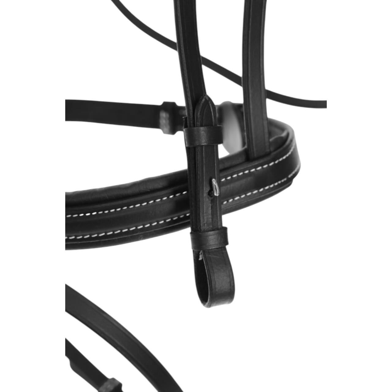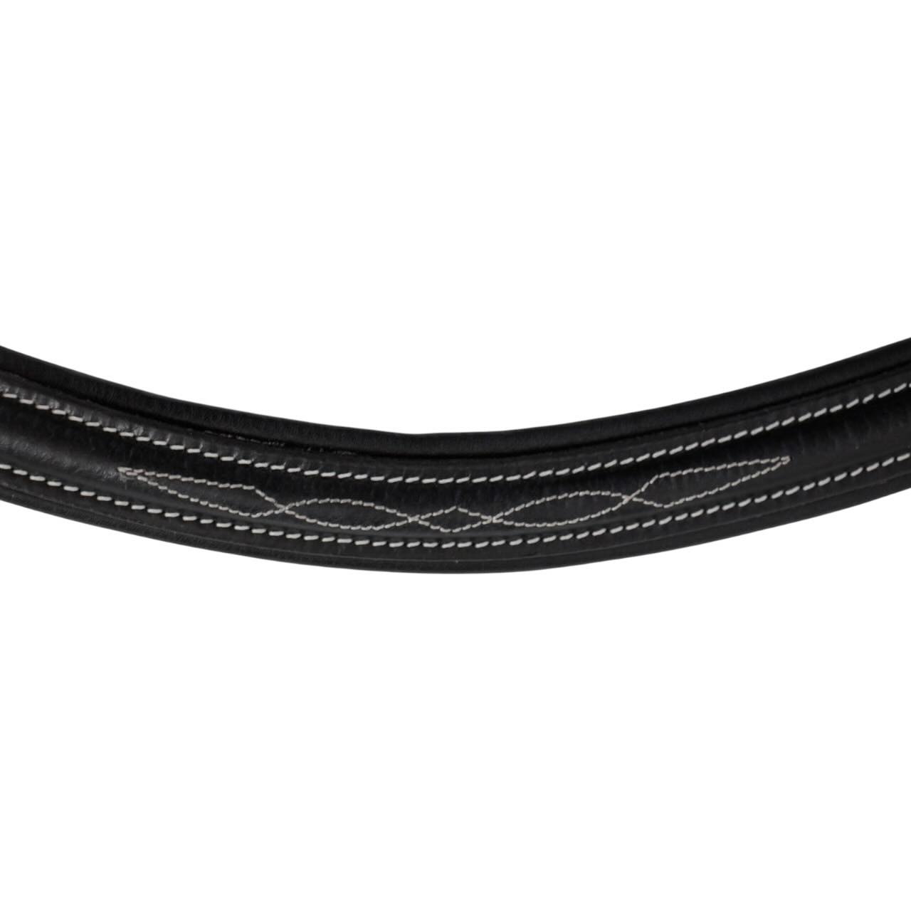 Der Trensenzaum besticht durch seine klassische Optik aus edlem Leder, das in den Farben Braun und Schwarz erhältlich ist. Die attraktiven weißen Ziernähte verleihen der Trense ein elegantes Erscheinungsbild, das sich perfekt für Turniere und den täglichen Gebrauch eignet. Dank des durchdachten Designs lässt sich der Trensenzaum schnell und einfach anlegen, während die weiche Polsterung für ein angenehmes Tragegefühl sorgt.