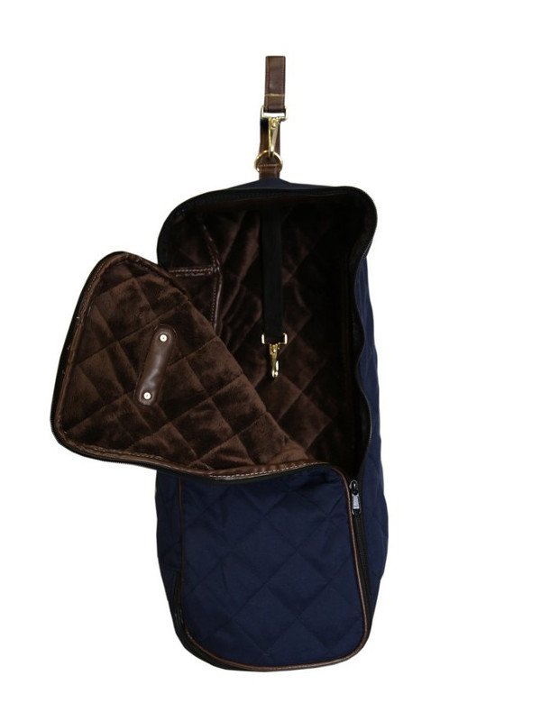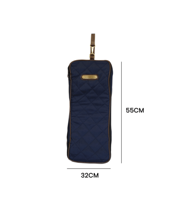 Die Trensentasche präsentiert sich in einem edlen Navy, Grau oder Schwarz. Ihr luxuriöses Innenfutter aus künstlichem Kaninchenfell schmiegt sich sanft an deine Trense und bietet optimalen Schutz. Das elegante, goldene Emblem verleiht der Tasche einen Hauch von Exklusivität und kann auf Wunsch personalisiert werden.