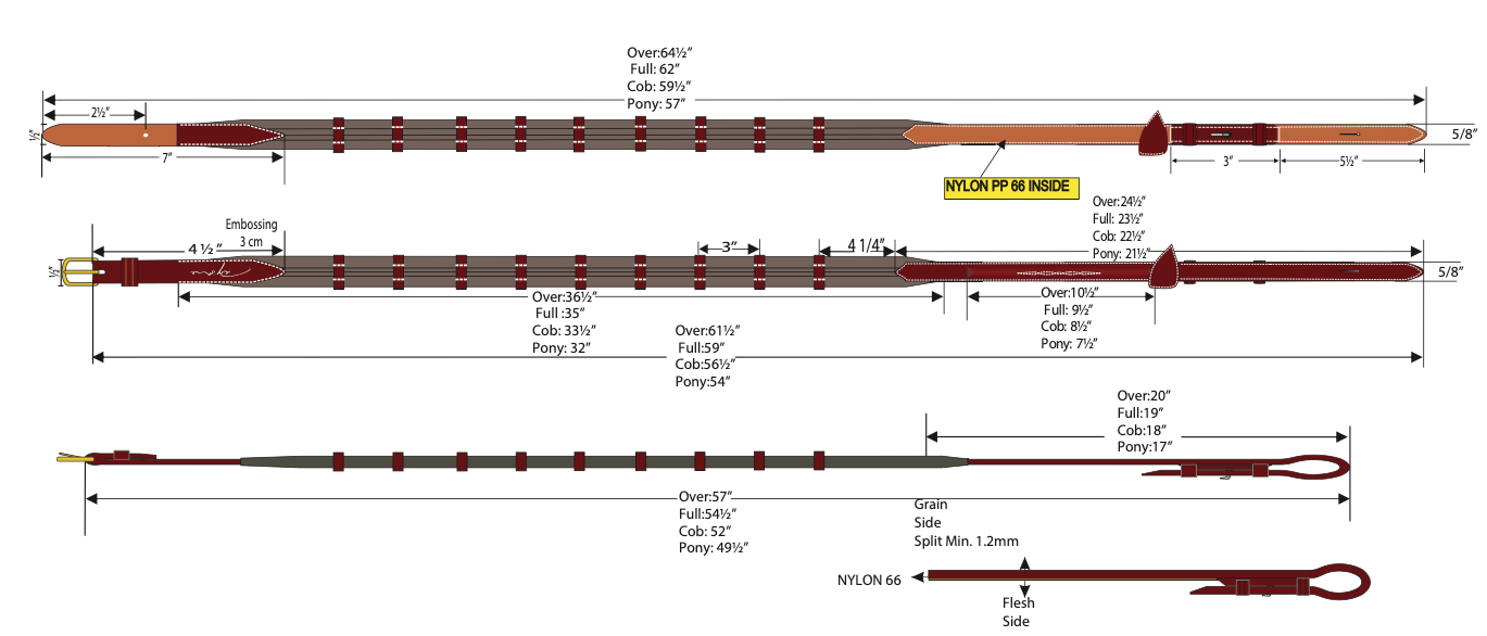 Mit einer Breite von 5/8" bieten diese Gurtzügel eine ideale Kombination aus Stärke und Flexibilität. Die speziellen Dy'on Stopper gewährleisten einen festen Halt, selbst bei nassen Bedingungen. Diese technischen Details ermöglichen dir eine reibungslose Kommunikation mit deinem Pferd, was die Effizienz und Sicherheit deines Ritts erhöht.