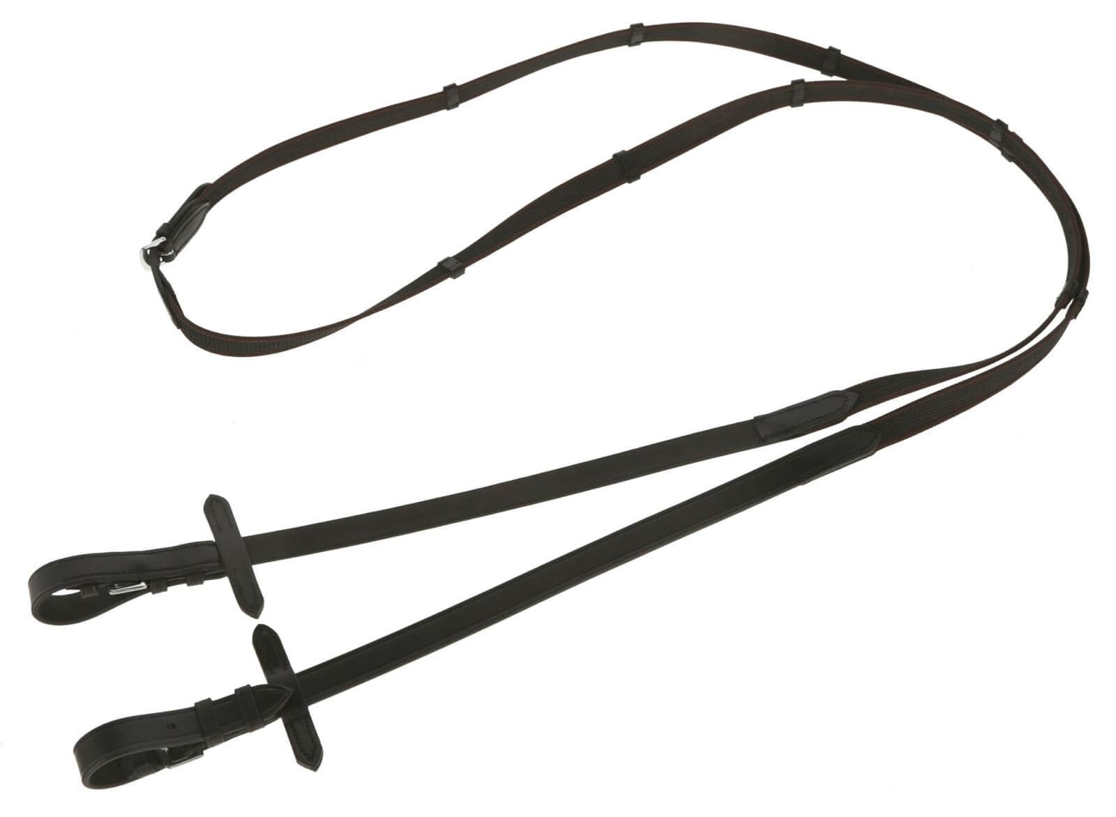 Die Gummizügel AntiSlip bestechen durch ihre stilvolle Farbkombination in Schwarz und Braun, die deinem Reitoutfit eine klassische Note verleiht. Durch die Verwendung von weichem Leder an den Endstücken und Martingalschiebern bieten sie nicht nur eine edle Optik, sondern auch höchsten Komfort und Flexibilität im Gebrauch.