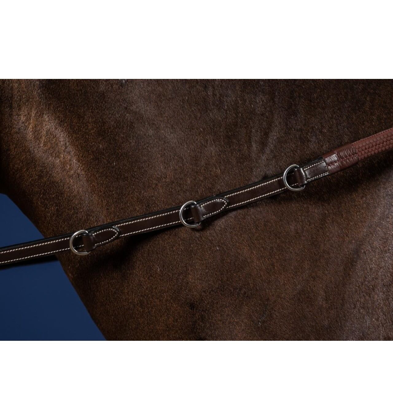 Dy'on präsentiert mit dem Gummizügel Howlett mit 3D-Ringen und 7 Lederstegen Zügel eine hochwertige Lösung für Reiter, die auf präzise Einwirkung und maximale Kontrolle setzen. Das durchdachte Design unterstützt eine klare Kommunikation zwischen Reiterhand und Pferdemaul.