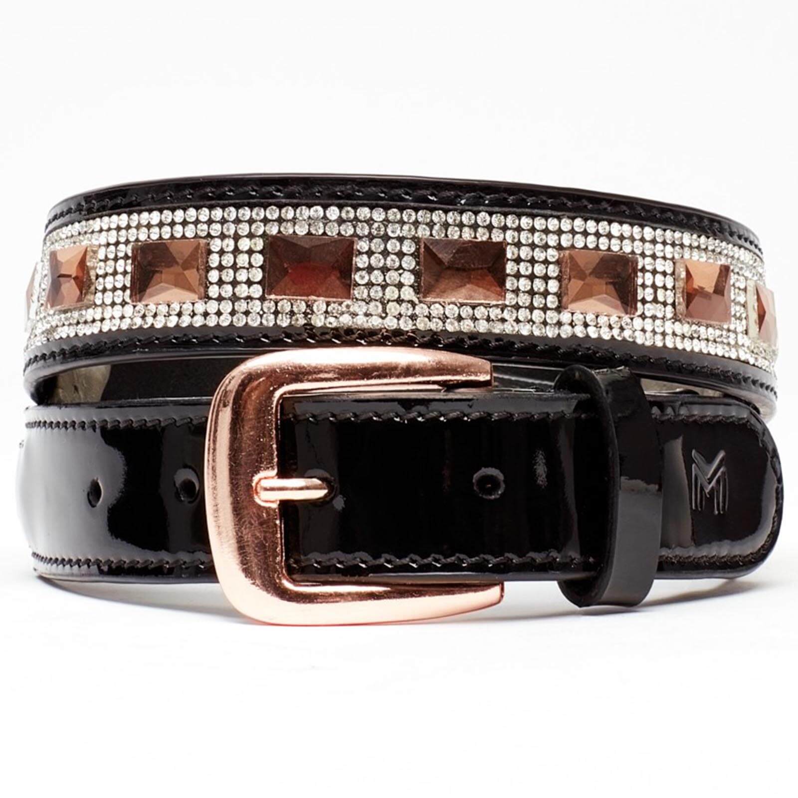 Gürtel Crystal Glam Belt von Maximilian Equestrian ist das Must-Have Accessoire, um deinem Reitoutfit das gewisse Etwas zu verleihen. Mit seinem glänzenden Lackleder und den funkelnden Kristallen sorgt dieser Gürtel für einen glamourösen Auftritt, während die rosegoldenen Details einen Hauch von Luxus versprechen.