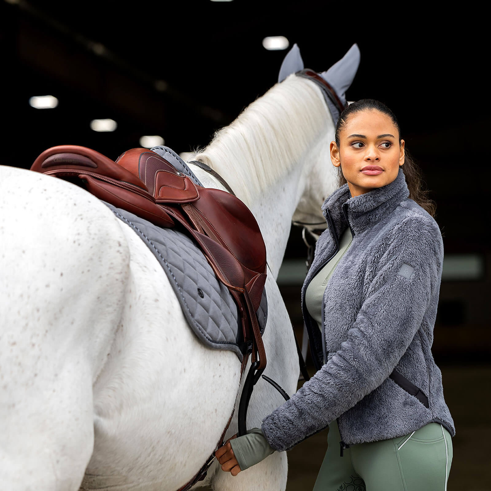 Die Jacke Damen Fatima HW 2024 besticht durch ihr flauschiges Fleece in den attraktiven Farbtönen Quiet Shade und Twilight Mauve. Das weiche Material schmiegt sich angenehm an deinen Körper, während die BR Stickerei auf der Brust einen dezenten, modischen Akzent setzt. Die durchdachte Kombination aus Stil und Funktion sorgt dafür, dass du sowohl im Stall als auch in der Stadt eine gute Figur machst.