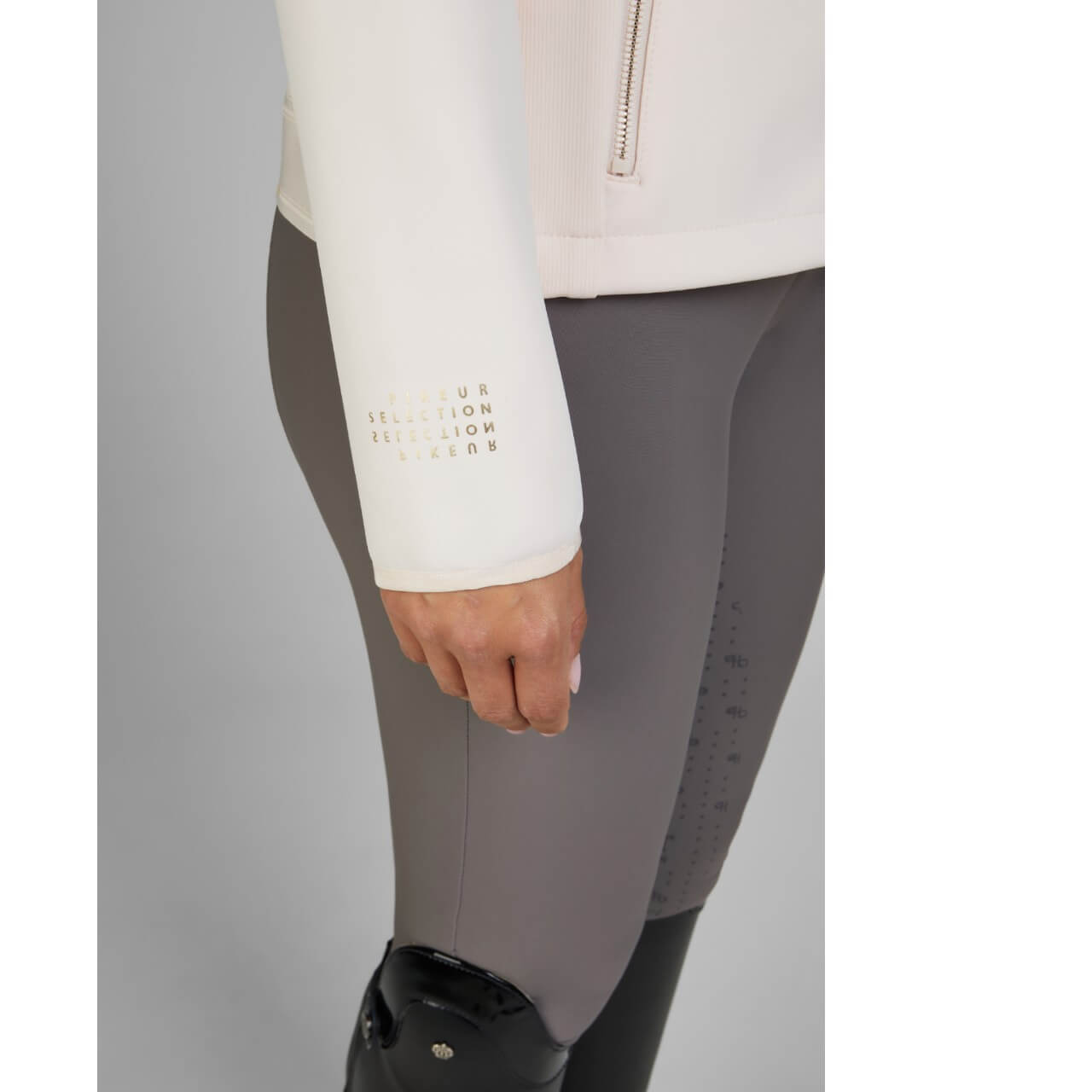 Die Softshelljacke Damen Techjersey Selection FS 2025 Jacke beeindruckt durch ihr modernes Design in sanftem Soft Rose und klassischem Mystic Grey. Die goldenen Akzente verleihen der Jacke eine exklusive Note, während der 2-Wege-Reißverschluss für maximale Flexibilität sorgt. Dieses durchdachte Design bietet nicht nur optische Highlights, sondern auch praktische Vorteile für den Reitsport.