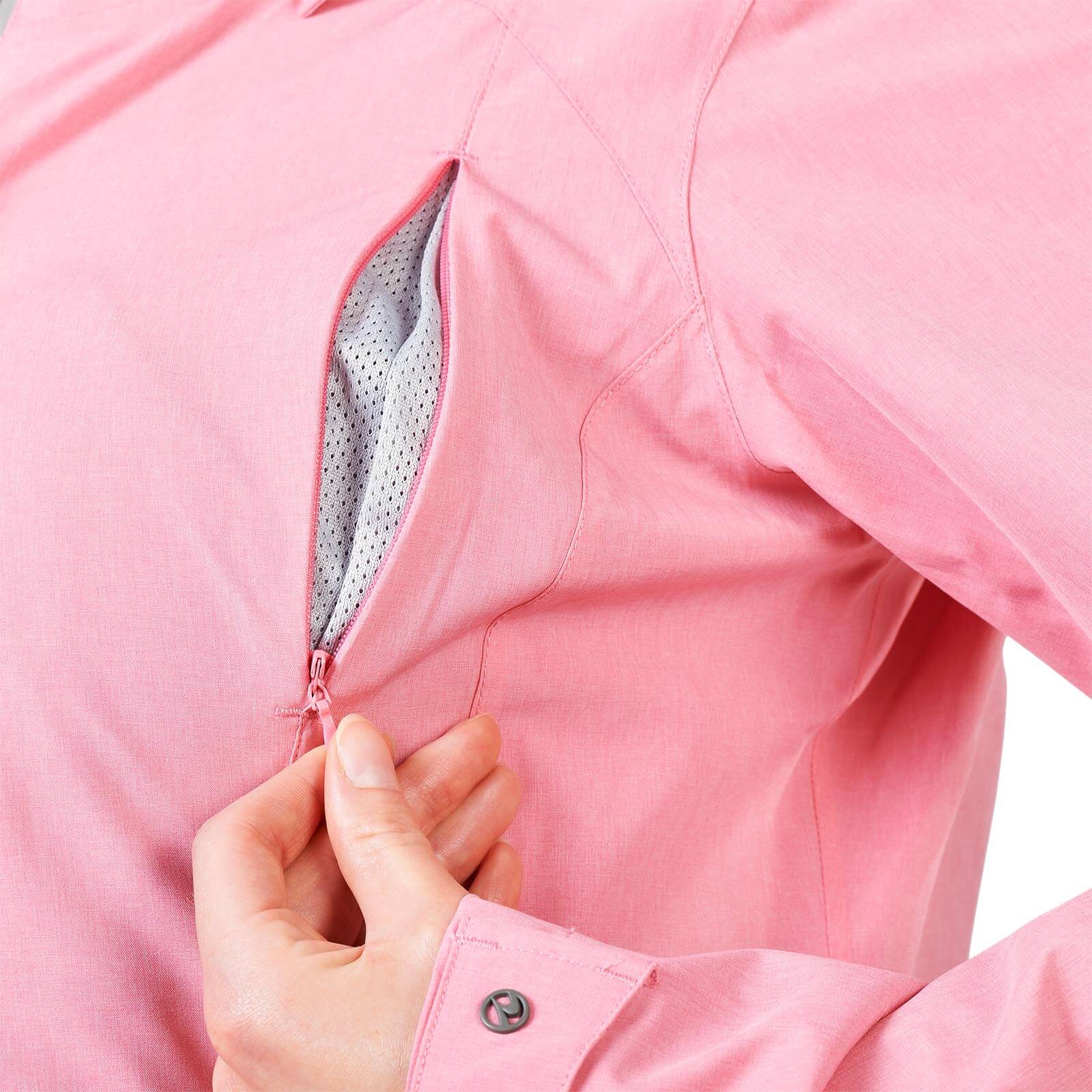 Ausgestattet mit einer wasserdichten elastischen Membran und einem 2-Wege-Reißverschluss ist die Sommerjacke Damen Natilly von BUSSE ein technisches Meisterwerk. Die Ventilationsreißverschlüsse an den Brustnähten sorgen für eine gute Belüftung, während die geräumigen Reißverschlusstaschen Platz für deine wichtigsten Utensilien bieten. Eine abnehmbare und fixierbare Kapuze rundet die durchdachte Funktionalität ab.