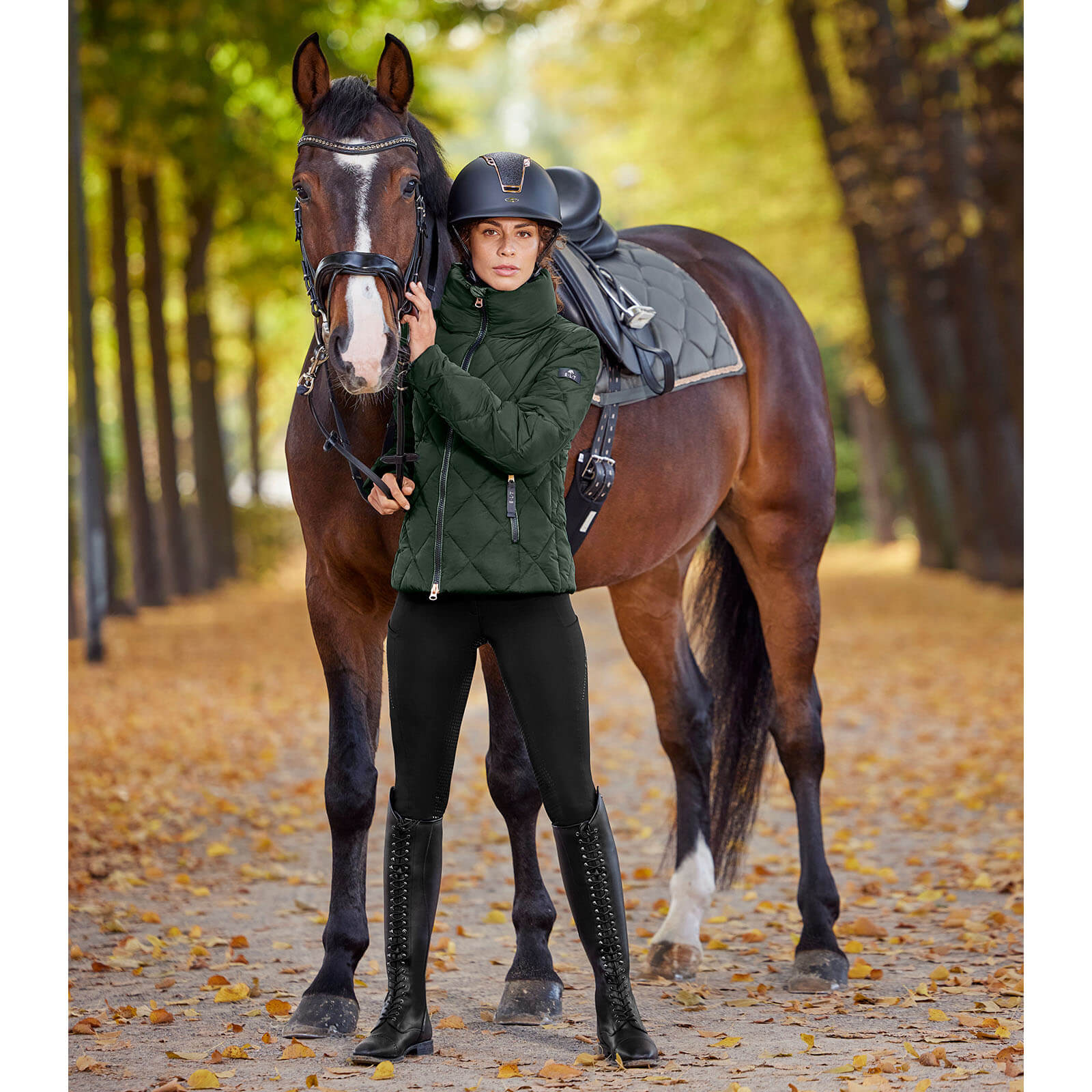 Die Jacke Damen Manchester HW 2023 Winterjacke besticht durch ihre geschmackvolle Kombination aus glänzendem und mattem Obermaterial. Der smaragdgrüne Farbton verleiht der Jacke einen luxuriösen Touch, während die taillierte Passform eine feminine Silhouette zaubert. Perfekt für anspruchsvolle Reiterinnen, die auch im Winter auf Stil nicht verzichten wollen.