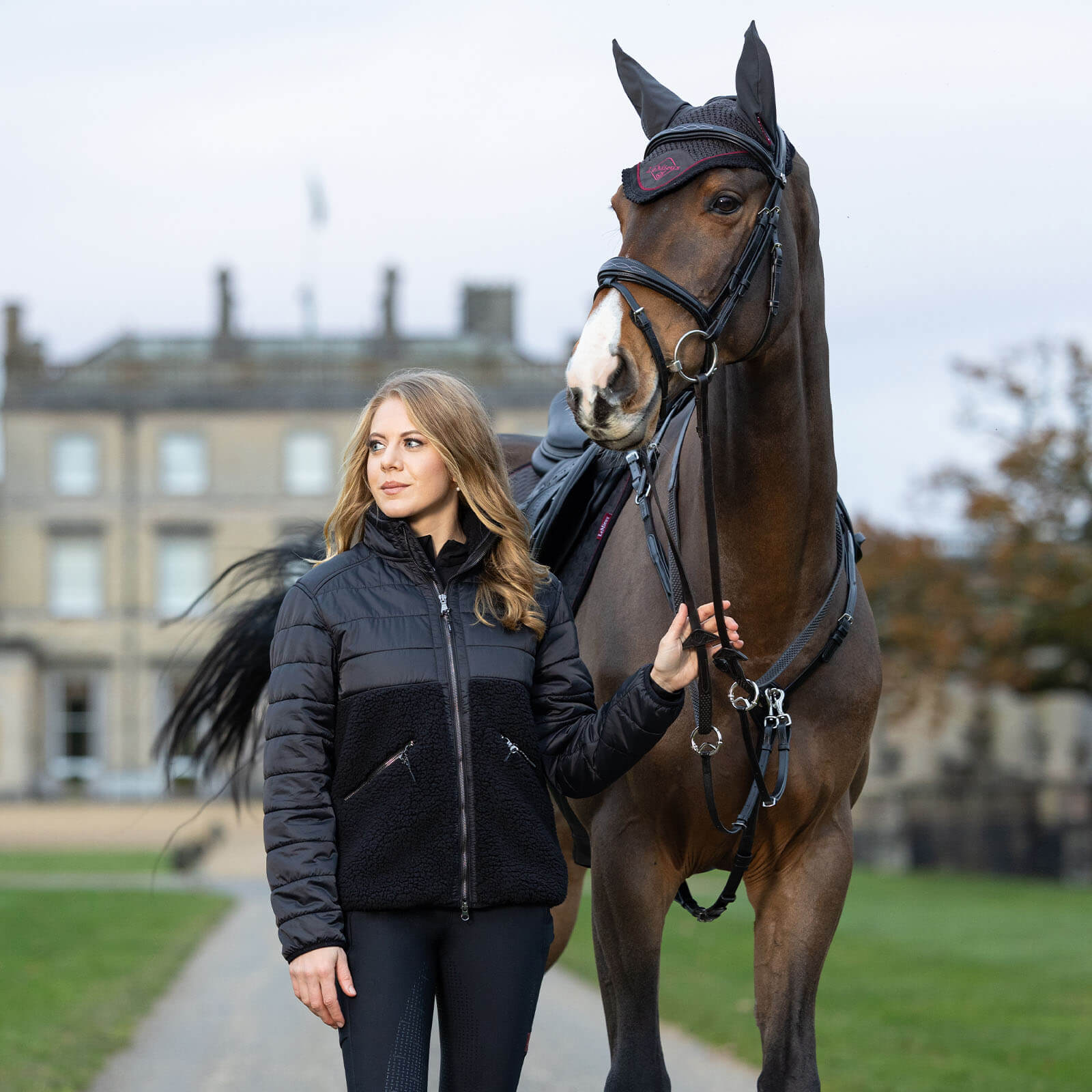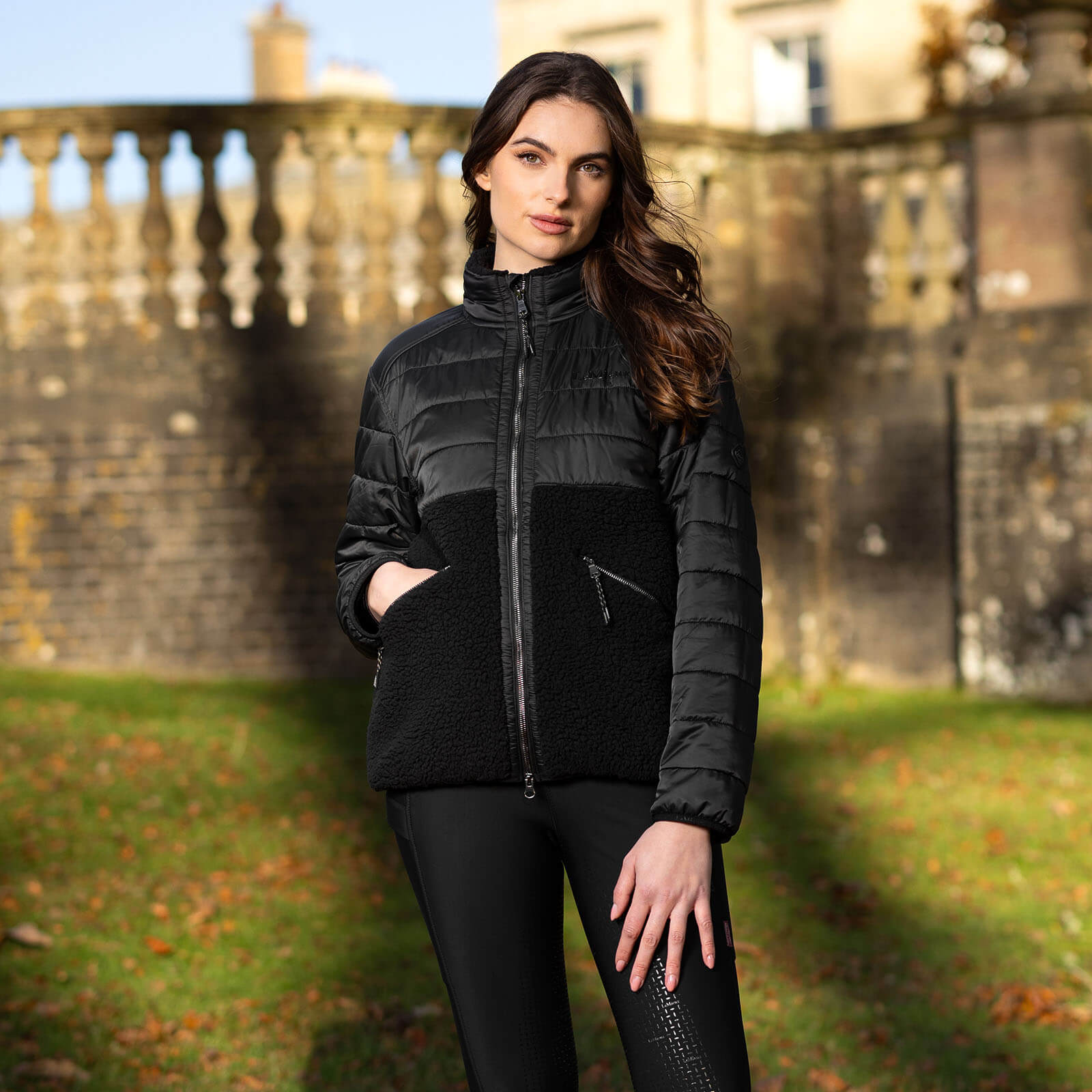 Die Fleecejacke Alissa Hybrid Fleece HW 2024 Pufferjacke besticht durch ihre moderne Optik mit gesteppten Einsätzen, die nicht nur für einen trendigen Look sorgen, sondern auch zusätzlichen Schutz vor Kälte bieten. Der durchgehende Metall-Frontzipper und die vertikal integrierten Reißverschlusstaschen verleihen der Jacke eine stilvolle Note, die sowohl im Stall als auch in der Stadt überzeugt.