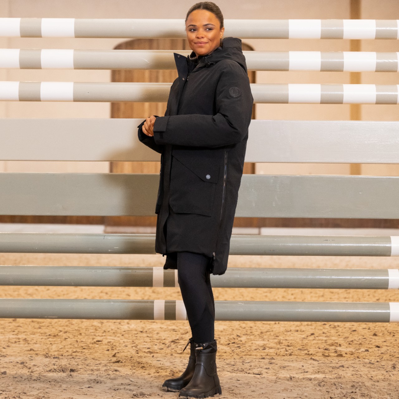 Der Mantel präsentiert sich im sportlich-eleganten Parka-Style und ist speziell auf die Bedürfnisse von Reiterinnen zugeschnitten. Ob auf dem Turnier, beim Training oder im Stall – dieser Mantel kombiniert Funktionalität mit einem modernen Look. Die dezente Farbgestaltung und die hochwertige Verarbeitung machen ihn zu einem langlebigen Begleiter. Auch abseits des Reitplatzes überzeugt er als modisches Outdoor-Piece. Mit seiner durchdachten Ausstattung ist er eine Investition in Qualität und Komfort, die dich viele Saisons begleiten wird.