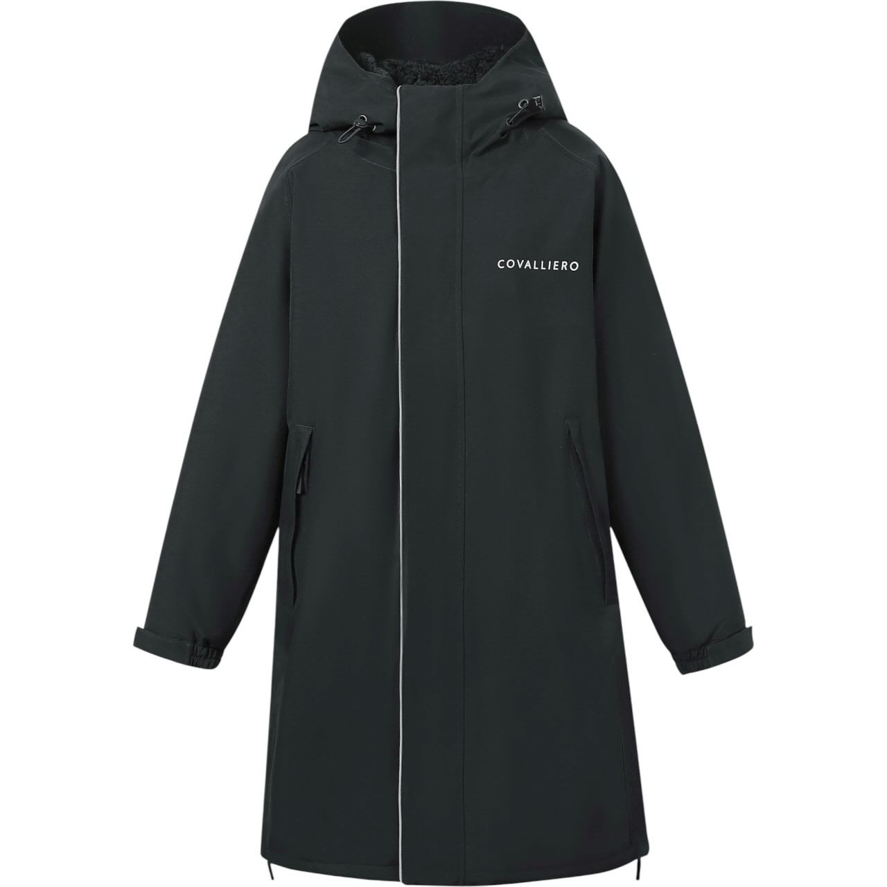 Der Covalliero Mantel ist speziell auf die Bedürfnisse von Reiterinnen abgestimmt. Mit seinen elastischen Beinschlaufen lässt er sich sicher fixieren und bleibt auch beim Reiten an Ort und Stelle. Dank des 2-Wege-Reißverschlusses genießt du uneingeschränkte Bewegungsfreiheit im Sattel. Die Kapuze lässt sich individuell anpassen, ausklappen oder mit einem Druckknopf fixieren. Zwei praktische Einschubtaschen mit Reißverschluss bieten Platz für kleine Utensilien. So bist du auch bei langen Ausritten bestens ausgestattet. Funktion und Stil ergänzen sich hier perfekt.