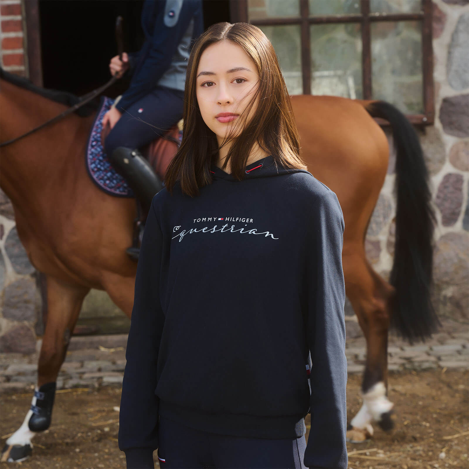Hoodie Damen Metallic Logo Graphic HW 2023 Kapuzenpullover von Tommy Hilfiger Equestrian vereint stilvolles Design mit höchster Funktionalität. Der vom Reitsport inspirierte Hoodie bietet dir dank 4-Wege-Stretch und integriertem Sonnenschutz ein angenehmes Tragegefühl, egal ob im Sattel oder in der Freizeit.