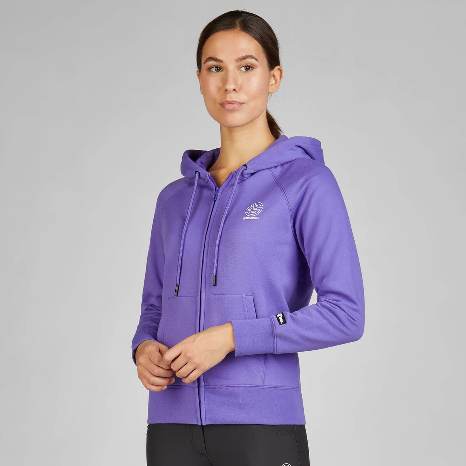 Mit ihrem zeitlosen Look in Purple und dem markanten Eskadron Front-Print setzt diese Sweatjacke stilvolle Akzente. Die ergonomische Raglanärmel-Konstruktion erleichtert jede Bewegung und lässt dich elegant auftreten, egal ob du im Sattel sitzt oder einen Spaziergang machst.