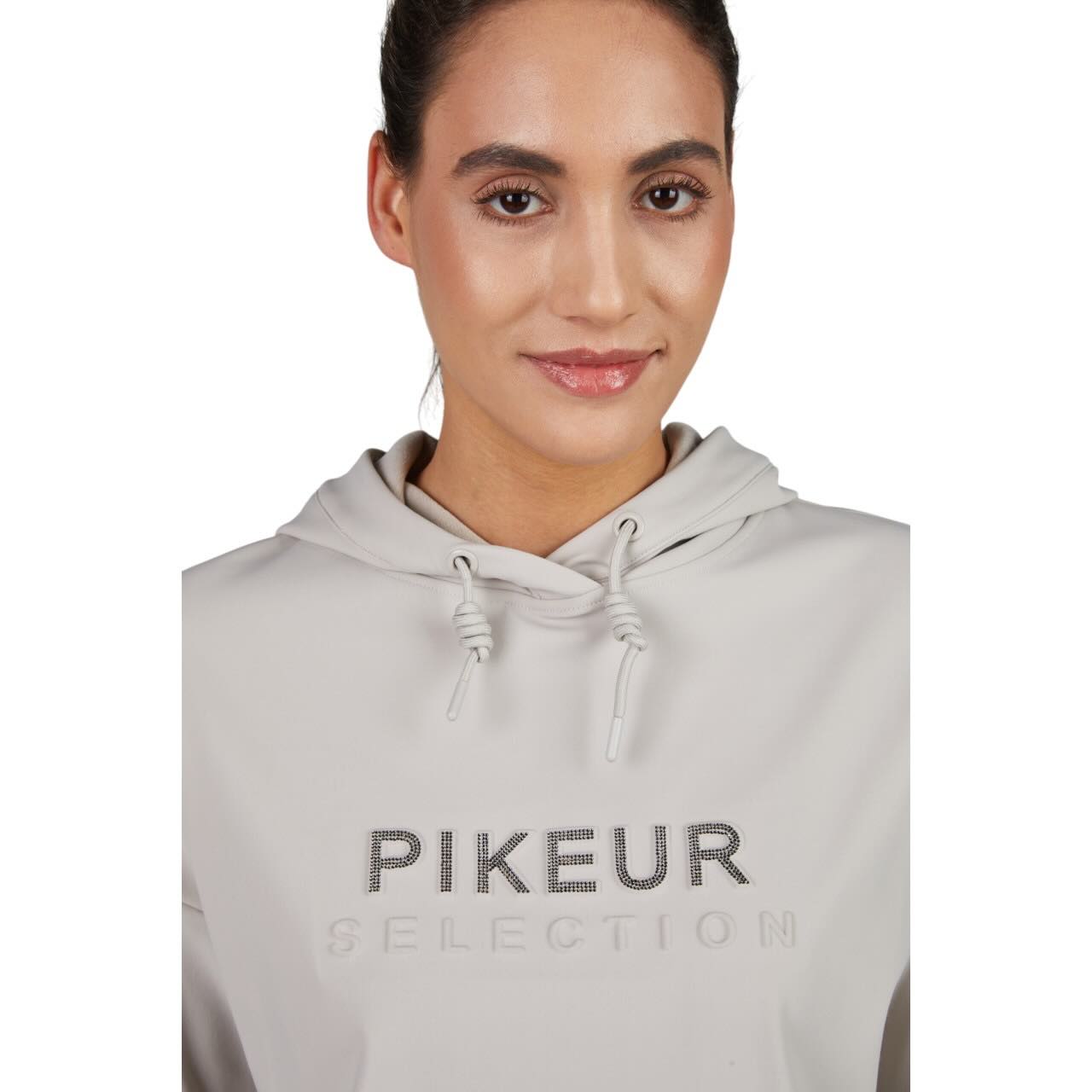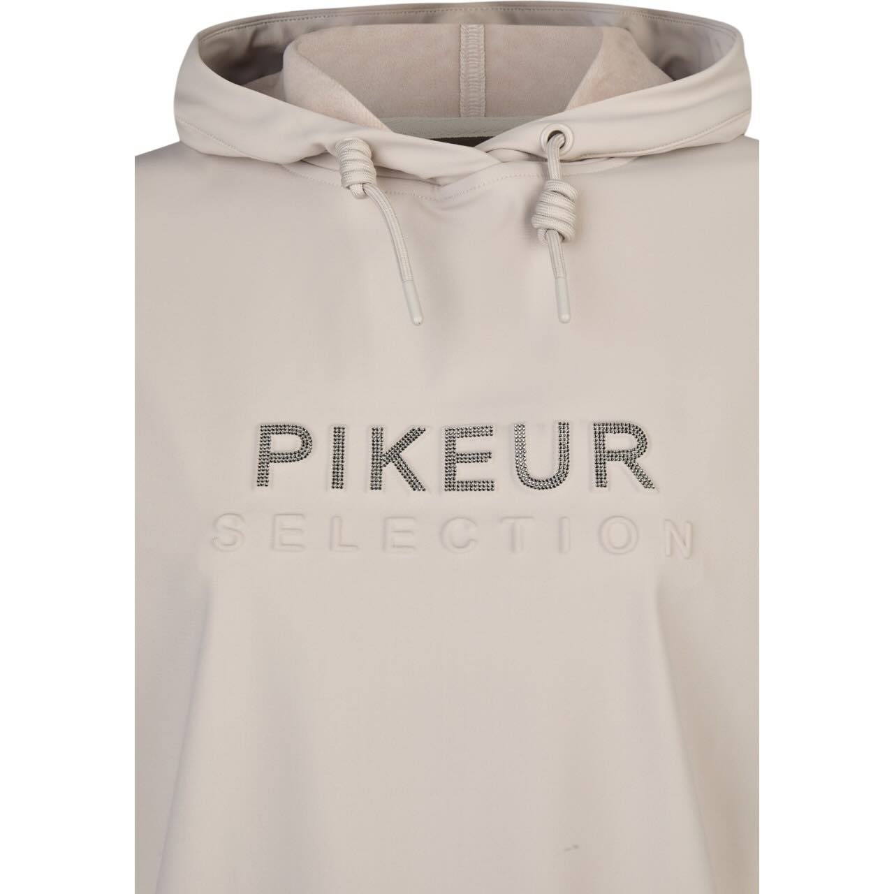 | Besonderheiten | Crystalpearls Labeling, elastisches Ärmelbündchen mit samtigen Streifenprint, kleiner Flockprint auf der Kapuze und auf den Ärmelbündchen, Pikeur Selection Logo auf der Brust in verschiedenen Designs |