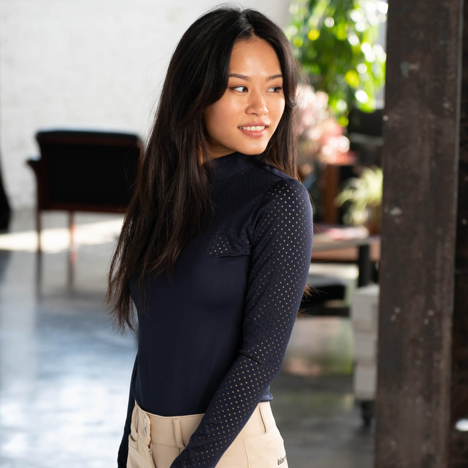 Funktionsshirt Damen Star Gold Langarmshirt von etalon vert ist die ideale Verbindung von Stil und Funktionalität. Mit seiner sportlichen Leichtigkeit und der hohen Atmungsaktivität bietet es dir Komfort und Flexibilität, während du im Stallalltag zum absoluten Hingucker wirst.