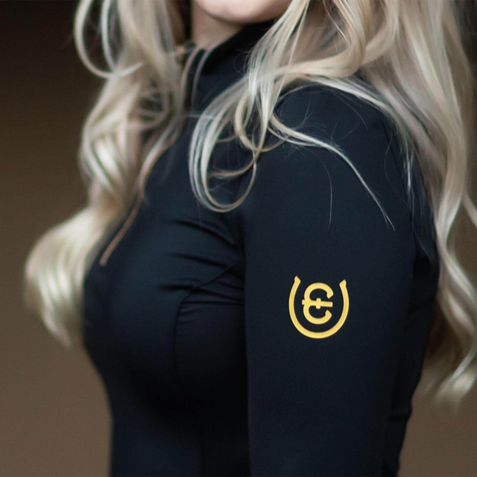Entdecke die Qualität und den Stil von Equestrian Stockholm mit dem Baselayer Damen Vision Top Black Gold Langarmshirt – ein Highlight in jeder Reitergarderobe!
