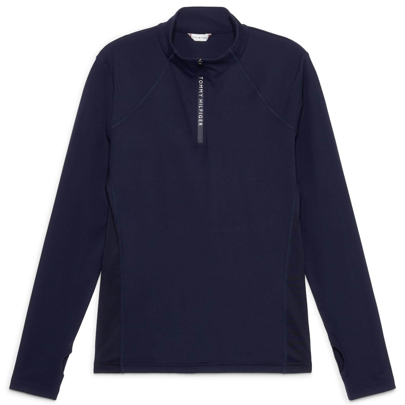 Shirt Damen Thermo Baselayer 1/4 Zip HW 2023 Langarmshirt von Tommy Hilfiger Equestrian vereint elegantes Design mit technischer Exzellenz. Dieses vielseitige Langarmshirt ist dein idealer Partner für kühle und warme Tage, denn es reguliert die Körpertemperatur optimal. Lass dich von der Kombination aus Stil und Funktionalität begeistern!
