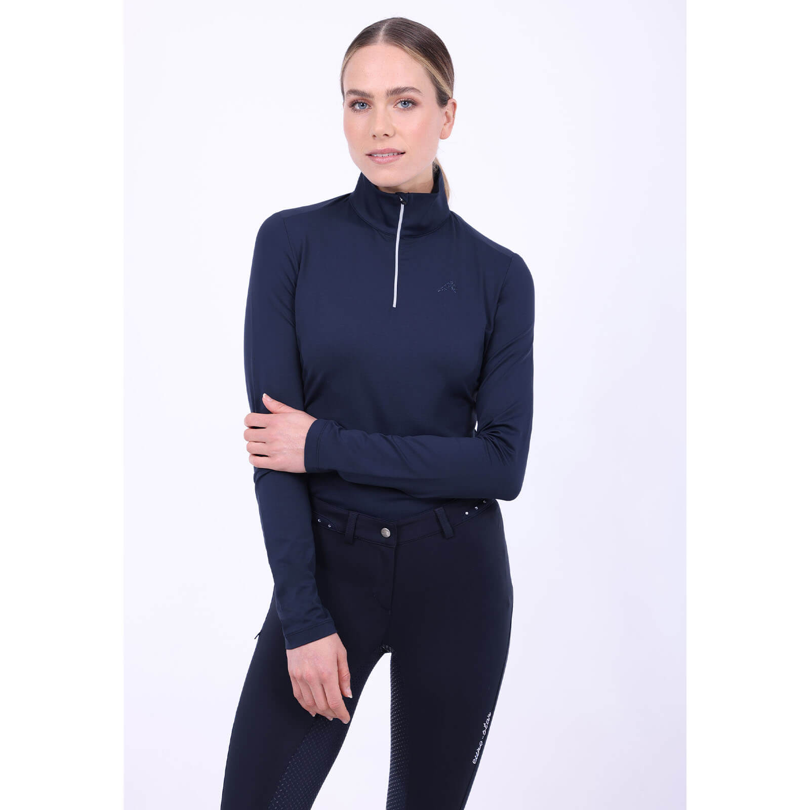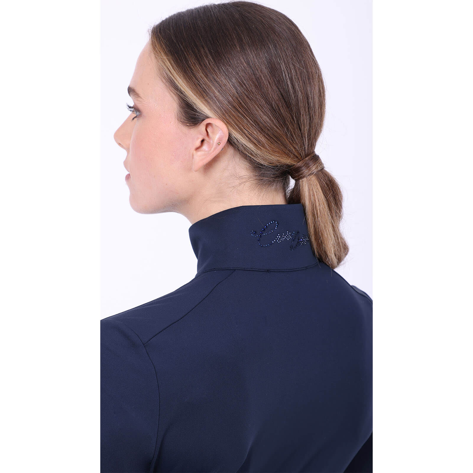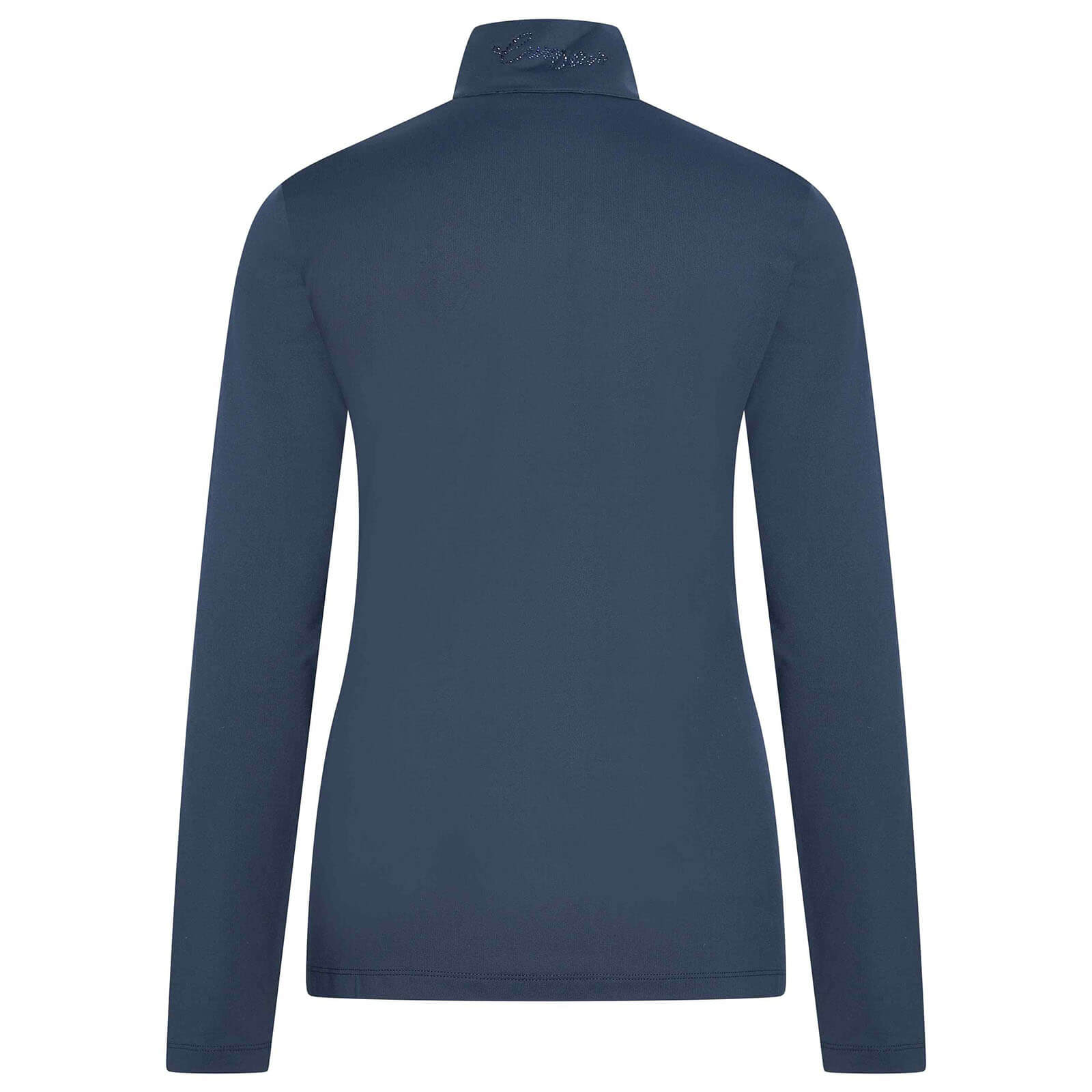 Das Funktionsshirt besticht durch seine schlanke Silhouette, die die Figur schmeichelhaft betont. Der dezente Navy-Ton harmoniert mit dem funkelnden Strass-Logo auf der Rückseite des Kragens und der linken Brust, was dem Shirt eine luxuriöse Note verleiht. Der halbe Reißverschluss ermöglicht dir eine flexible Anpassung, während der Kinnschutz zusätzlichen Tragekomfort bietet.