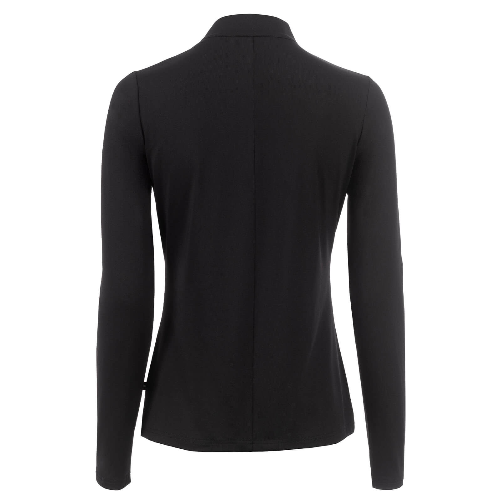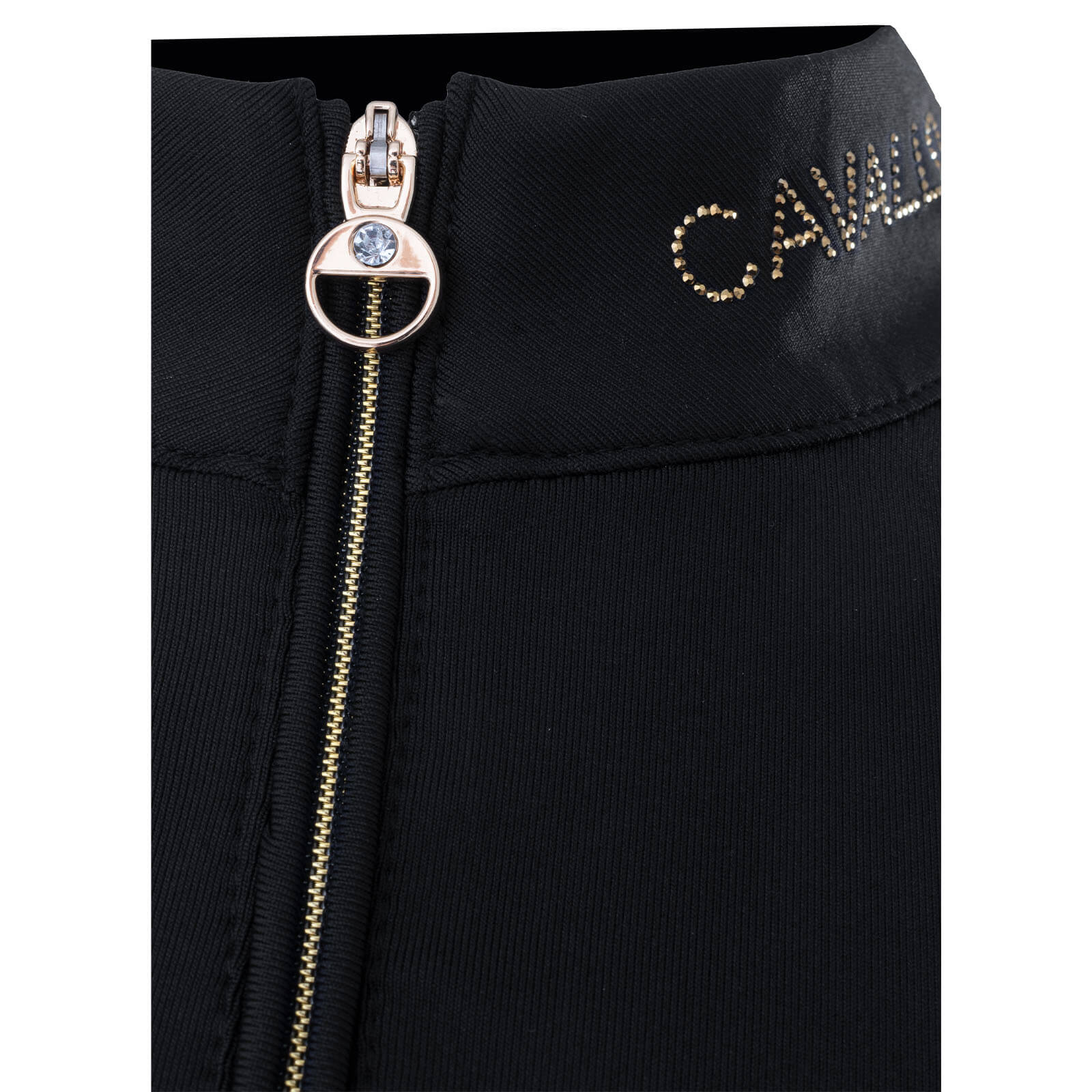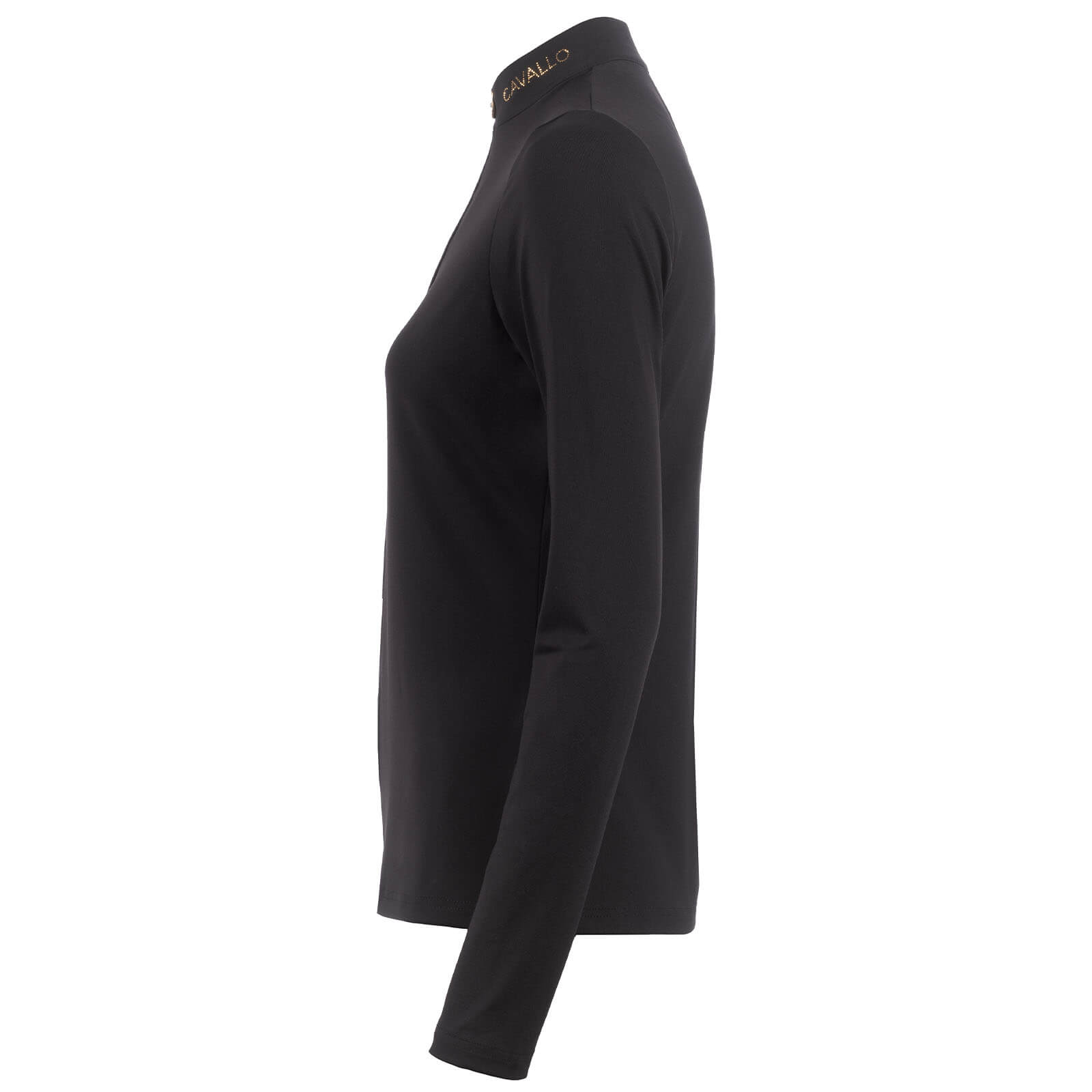 Das CAVALLACEY Langarmshirt besticht durch seine edle Optik mit einem Stehkragen, der durch einen goldenen Reißverschluss mit stilvollem Schmuckanhänger geöffnet werden kann. Die schwarzen Kristallsteine an der Reißverschluss-Garage verleihen dem Shirt einen luxuriösen Touch, während der Cavallo Schriftzug aus goldenen Kristallen für ein glamouröses Finish sorgt. Die präzise Nahtführung sorgt für ein makelloses Erscheinungsbild, das dich auf und abseits des Pferdes in Szene setzt.