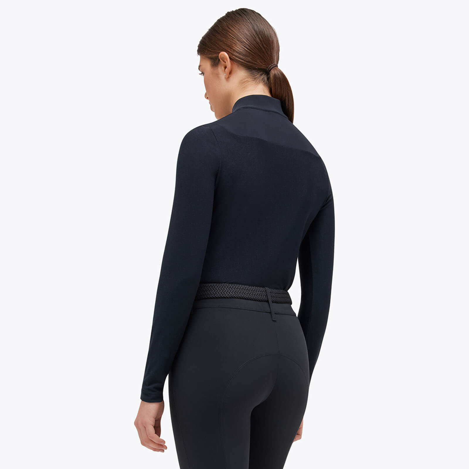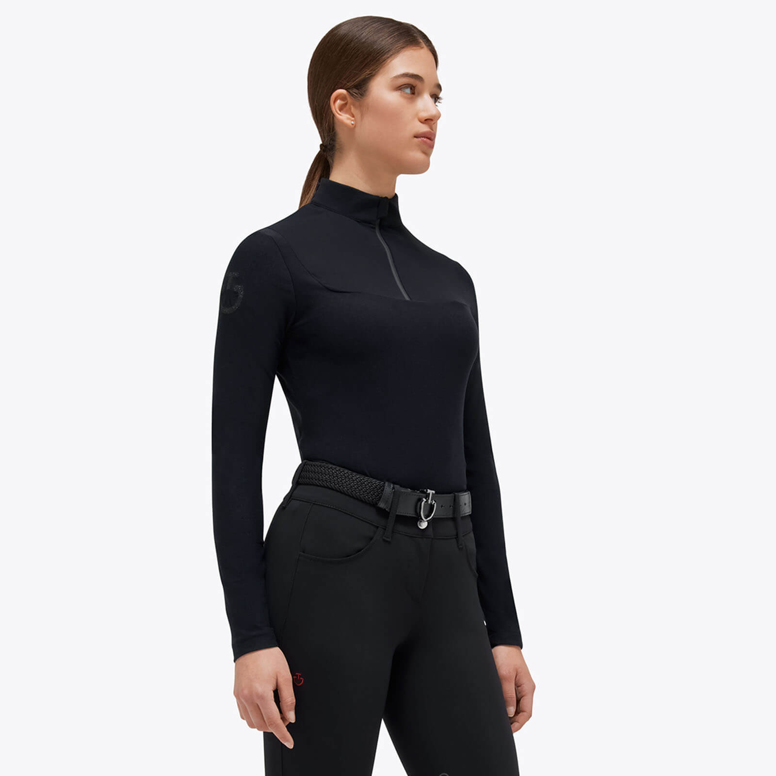 Das Trainingsshirt besticht durch seine stilvolle schwarze Farbe und den glänzenden Reißverschluss, der einen modernen Kontrast schafft. Das ikonische CT-Logo verleiht diesem Langarmshirt eine edle Note, die dich auf und abseits des Reitplatzes hervorhebt. Das durchdachte Design sorgt dafür, dass du dich frei bewegen kannst, während du gleichzeitig stilvoll aussiehst.