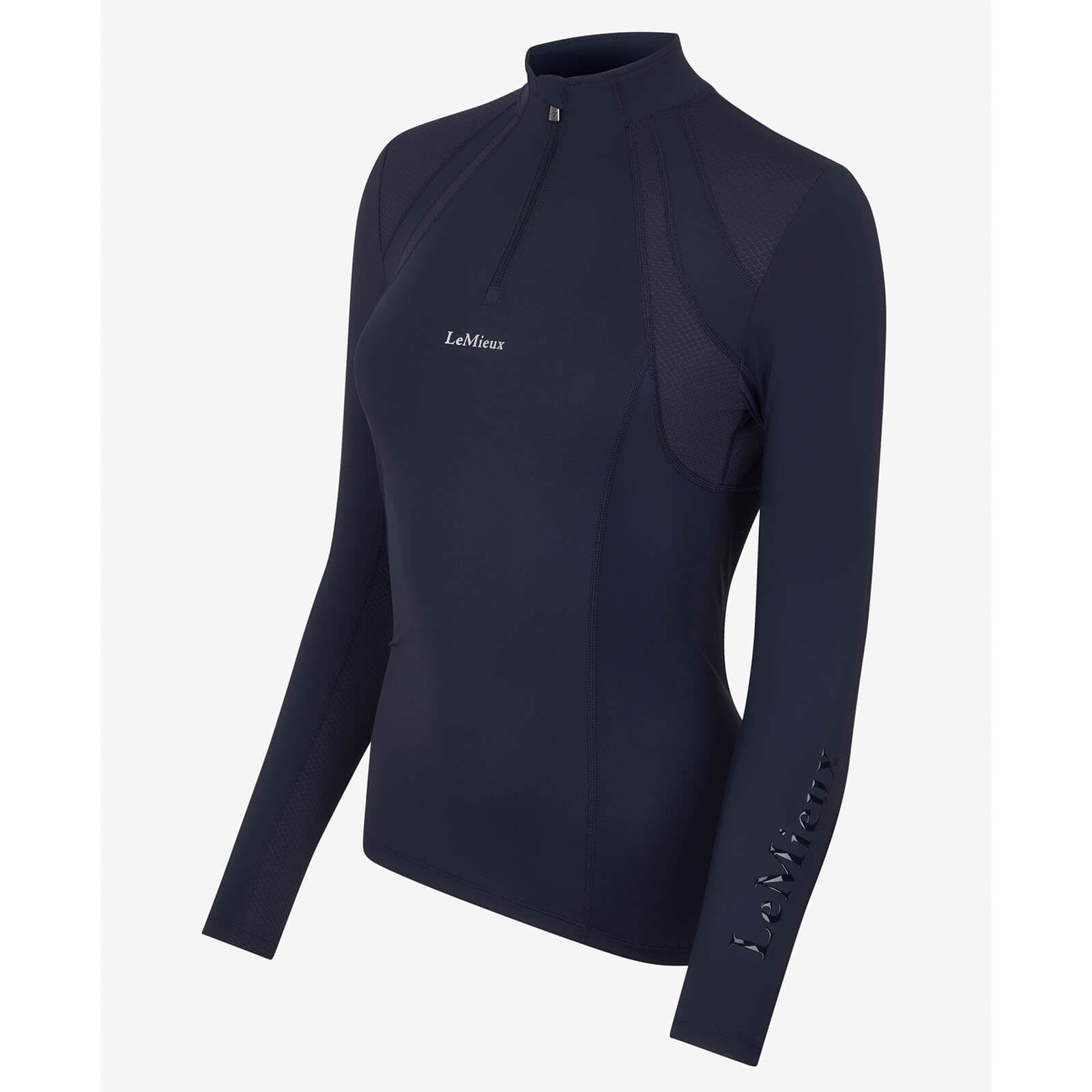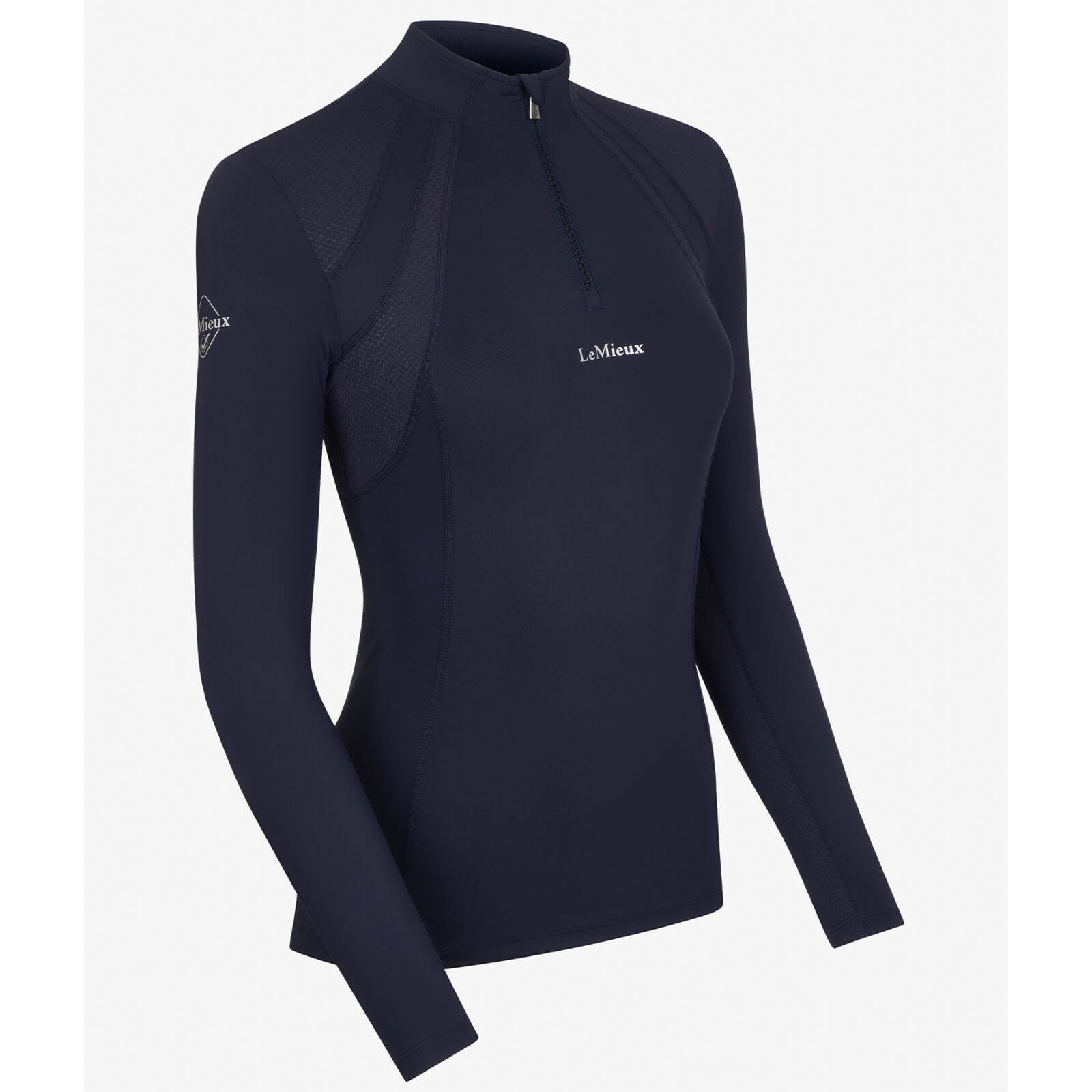 Funktionsshirt Damen Mia Mesh Long Sleeve Baselayer FS 2024 von LeMieux: Dieses Langarmshirt verbindet stilvolles Design mit herausragender Funktionalität. Erlebe, wie das schweißableitende Thermalmaterial und die atmungsaktiven Mesh-Einsätze dich kühl und trocken halten, während du dich uneingeschränkt bewegen kannst.