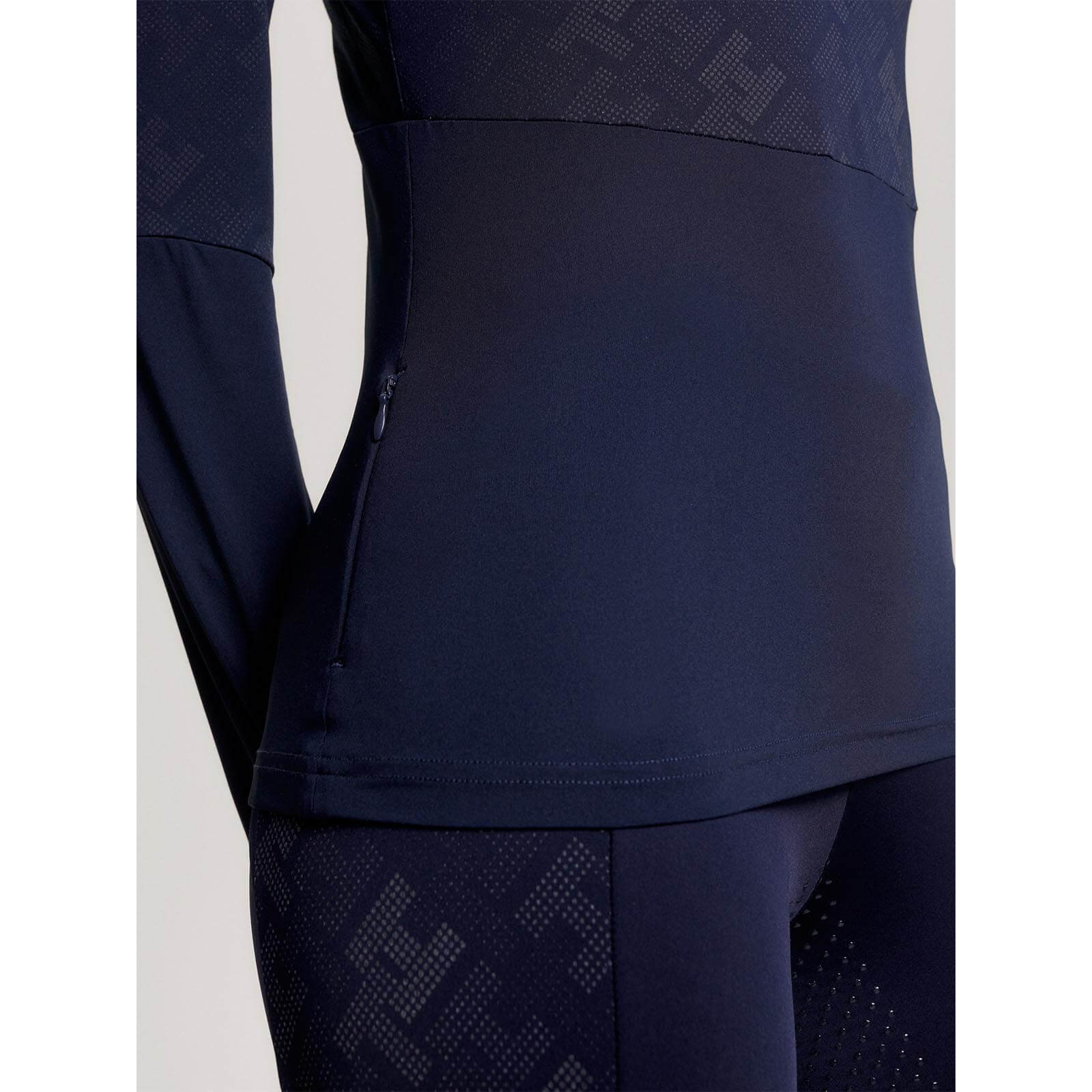 Das Langarmshirt besticht durch ein modernes Design mit einem 1/4-Reißverschluss und einem eleganten Stehkragen. Der reflektierende Monogramm-Print an den Ärmeln und auf der Brust sorgt nicht nur für einen stilvollen Auftritt, sondern auch für erhöhte Sichtbarkeit bei schlechten Lichtverhältnissen. Die Multi-Farbe verleiht dem Shirt einen einzigartigen Look, der in jedem Reitstall für Aufsehen sorgt.