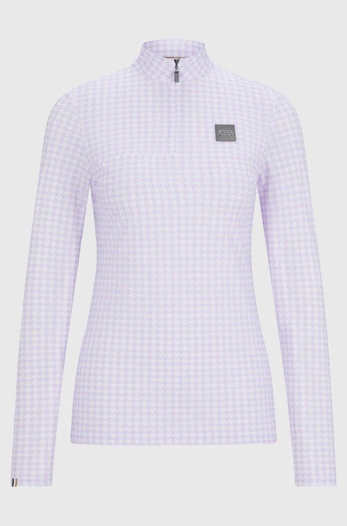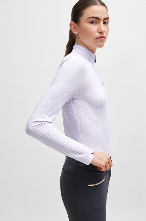 Das Rachel HW 2024 Langarm Shirt besticht durch ein stilvolles Allover-Hahntritt-Muster, das deinem Outfit das gewisse Etwas verleiht. Die dezenten Details wie das Signature Stripe Flag am Ärmel und der BOSS Logo Kunstleder-Patch auf der Brust sind echte Hingucker. Dieses Design sorgt nicht nur für einen modischen Auftritt, sondern bietet dir auch die notwendige Flexibilität und Bewegungsfreiheit beim Reiten.