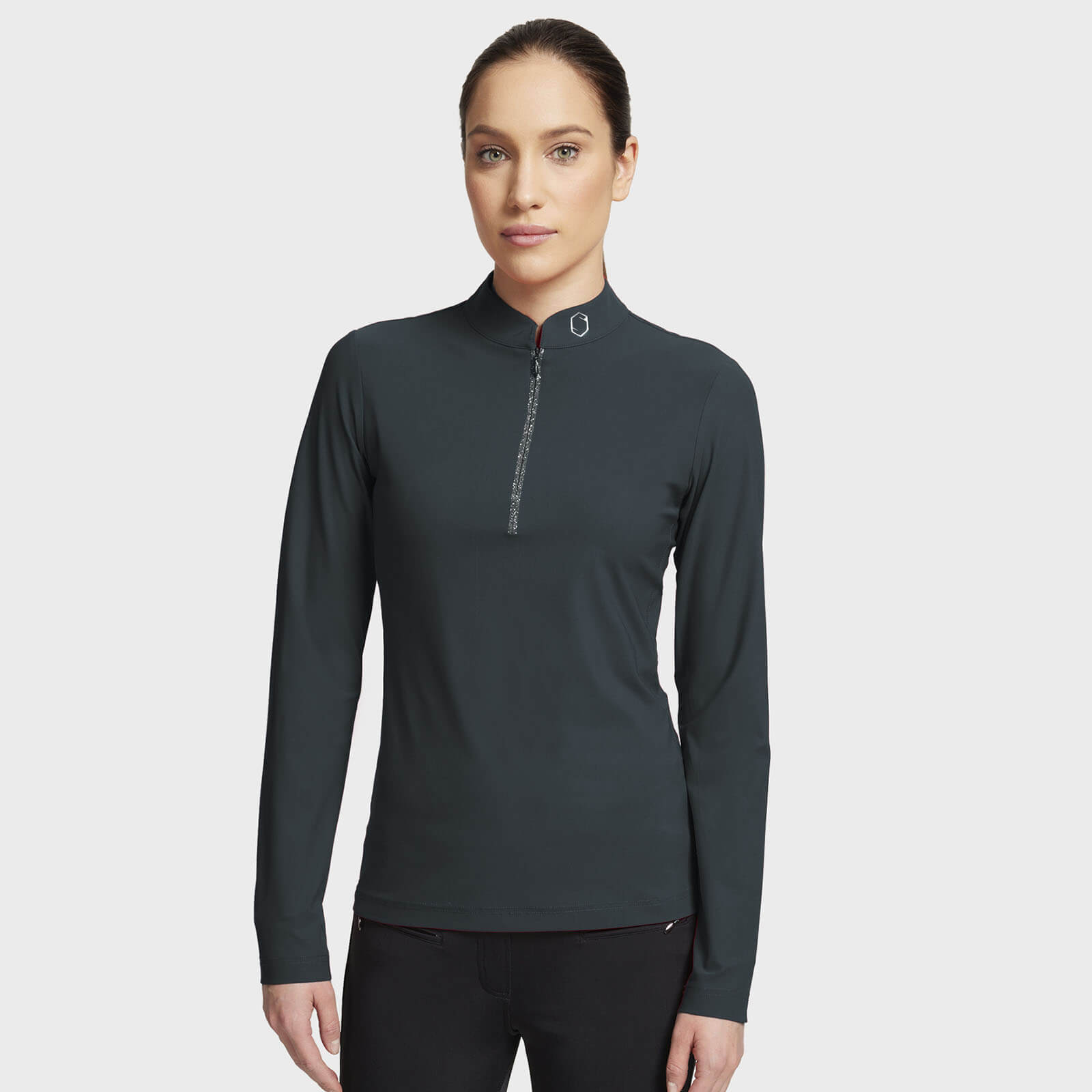 Das Langarmshirt Brunella beeindruckt mit einem funkelnden Reißverschluss, der von Swarovski-Kristallen umsäumt ist. Der metallisierte Logodruck mit weiteren Kristallen auf Kragen und Rücken sorgt für einen exklusiven Look. Diese Details verbinden sich harmonisch mit der praktischen Funktion, dir einen stilvollen Auftritt auf jedem Turnier oder Training zu garantieren.