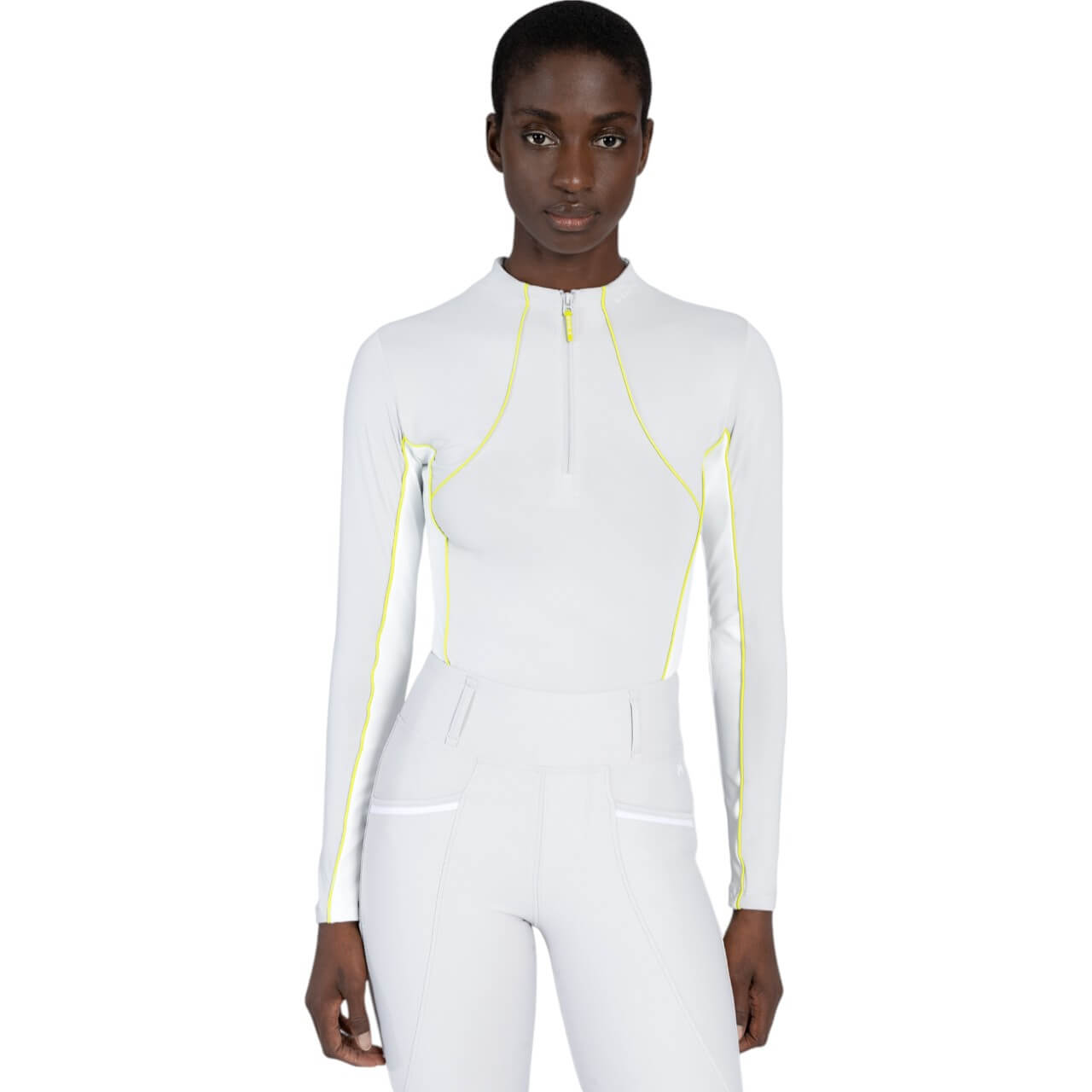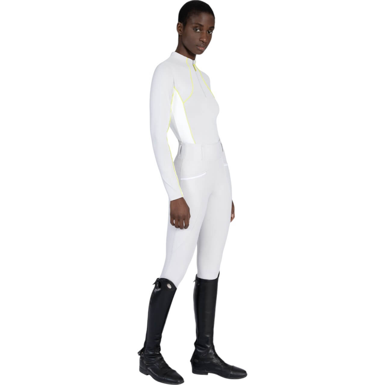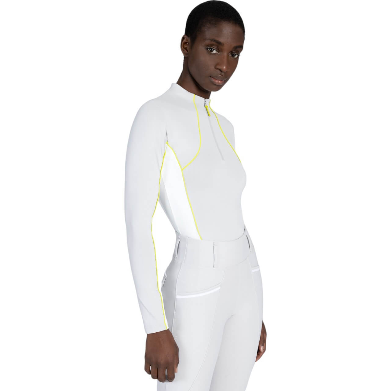 Das Maximilian Equestrian Funktionsshirt Damen langarm Contrast Baselayer harmoniert ideal mit der passenden Pferdekollektion. Kombiniere es mit dem Crew Glacier/Lime-Set für einen perfekt abgestimmten Look. Die limettenfarbene Paspelierung setzt frische Akzente und verleiht deinem Outfit einen sportlich-eleganten Touch. Die hochwertige Verarbeitung garantiert Langlebigkeit und Formstabilität auch nach häufigem Waschen. Dank der körpernahen Passform schmiegt sich das Shirt wie eine zweite Haut an. Egal ob im Training, bei Turnieren oder im Alltag – mit diesem Baselayer bist du bestens ausgestattet.