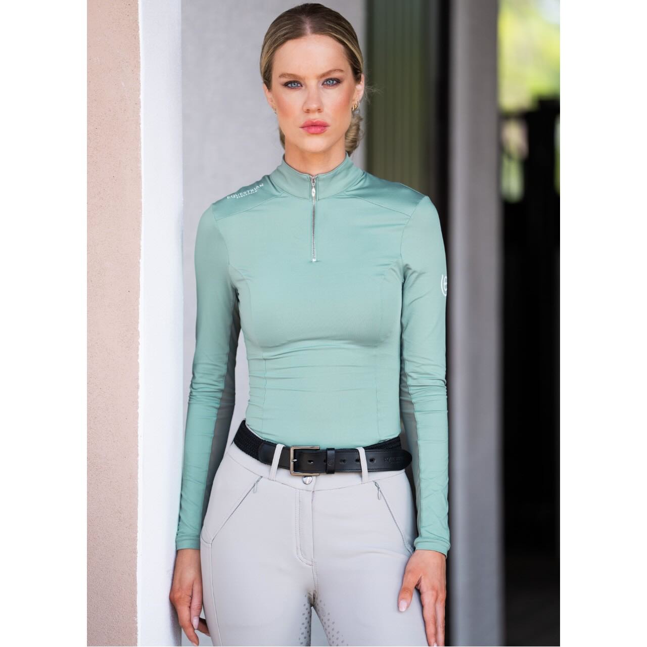 Equestrian Stockholm Baselayer Damen Longsleeve Air Breeze Mint Green Shirt ist das perfekte Longsleeve für dein tägliches Reittraining. Die frische Farbgebung in Mintgrün, kombiniert mit funktionalen Details, sorgt für ein angenehmes Tragegefühl und einen stilvollen Auftritt – bei jedem Wetter.