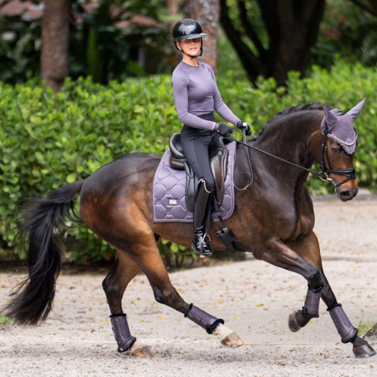 Mit seinem integrierten UV-Schutz (UPF 30+) schützt dich das Shirt zuverlässig vor schädlicher Sonneneinstrahlung. Damit eignet es sich ideal für sonnige Tage auf dem Reitplatz oder im Gelände. Die langärmelige Variante sorgt zugleich für leichten Kälteschutz und ergänzt dein Outfit in der Übergangszeit perfekt. Der dezente Logodruck auf beiden Ärmeln unterstreicht das sportlich-elegante Design. Die edle Farbe „Dark Violet“ lässt sich vielseitig kombinieren und verleiht deinem Reitlook einen modernen Touch. Dieser Baselayer ist nicht nur funktional, sondern auch ein modisches Statement.