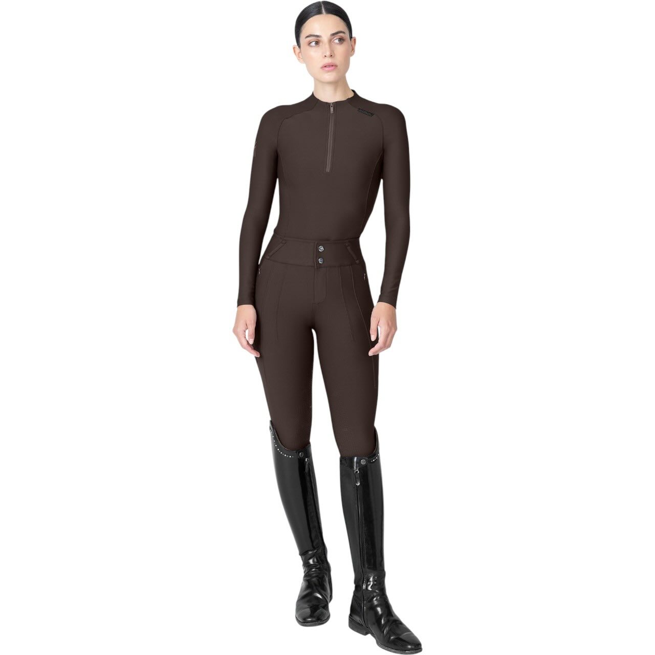Der Schnitt des Baselayers ist so konzipiert, dass er wie eine zweite Haut sitzt, ohne einzuengen. Er ist true to size, kann aber für einen lockereren Look eine Nummer größer gewählt werden. Die sorgfältige Verarbeitung garantiert, dass alle Nähte angenehm auf der Haut liegen. Das sportlich-elegante Design lässt sich hervorragend mit anderen Reitsport- und Freizeitlooks kombinieren. Durch sein zeitloses Erscheinungsbild wird er zu einem unverzichtbaren Bestandteil deiner Garderobe. So bist du nicht nur funktional, sondern auch stilvoll unterwegs – zu jeder Jahreszeit.