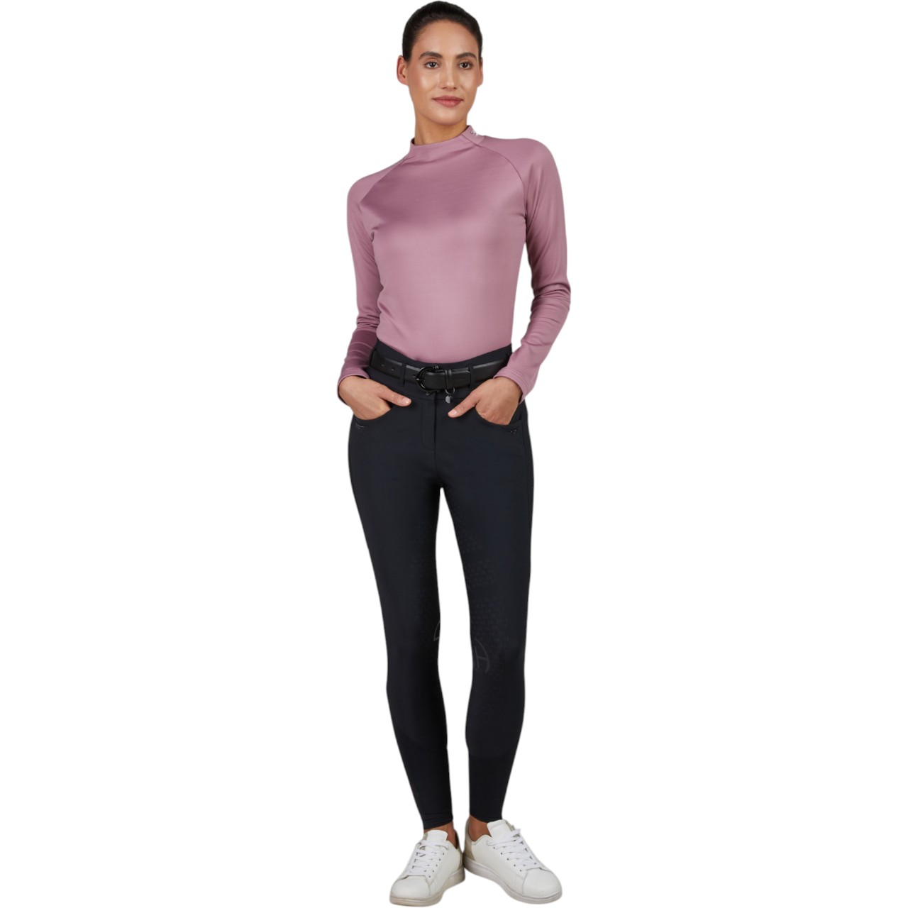 Das Baselayer Damen Langarm Athleisure HW 2025 Roll Neck Shirt begeistert mit einem zeitlos sportlichen Look. Der silberne, erhabene Pikeur-Athleisure-Print am Kragen, am Ärmel und auf dem Rücken setzt edle Akzente. Die taillierte Passform schmeichelt deiner Figur, während der Rollkragen sowohl Schutz als auch Stil bietet. Perfekt kombinierbar mit Reithosen, Westen oder Jacken, fügt sich das Shirt nahtlos in jede Reitsportgarderobe ein. Ob im Training, auf dem Turnier oder in der Freizeit – du zeigst immer eine sportlich-elegante Linie. Die dezenten Designdetails betonen den hochwertigen Charakter.