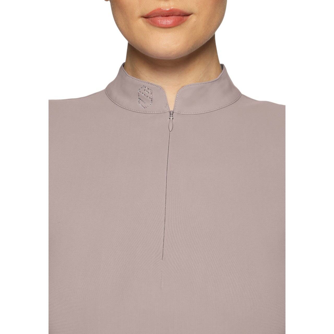 Der Samshield Baselayer Damen Bella FS 2026 Longsleeve überzeugt mit seiner körpernahen Second-Skin-Passform, die sich optimal an deine Silhouette anschmiegt. Dadurch entsteht ein angenehmes Tragegefühl mit maximaler Bewegungsfreiheit im Sattel. Die langen Ärmel unterstützen den sportlichen Look und bieten zusätzlichen Komfort bei wechselnden Temperaturen. Ein dezenter Kragen unterstreicht die elegante Linienführung des Reitshirts. Gleichzeitig sorgt der unsichtbare Half-Zip in Ton-in-Ton für eine praktische Belüftungsmöglichkeit. So bleibt das Trainingstop funktional und stilvoll zugleich.