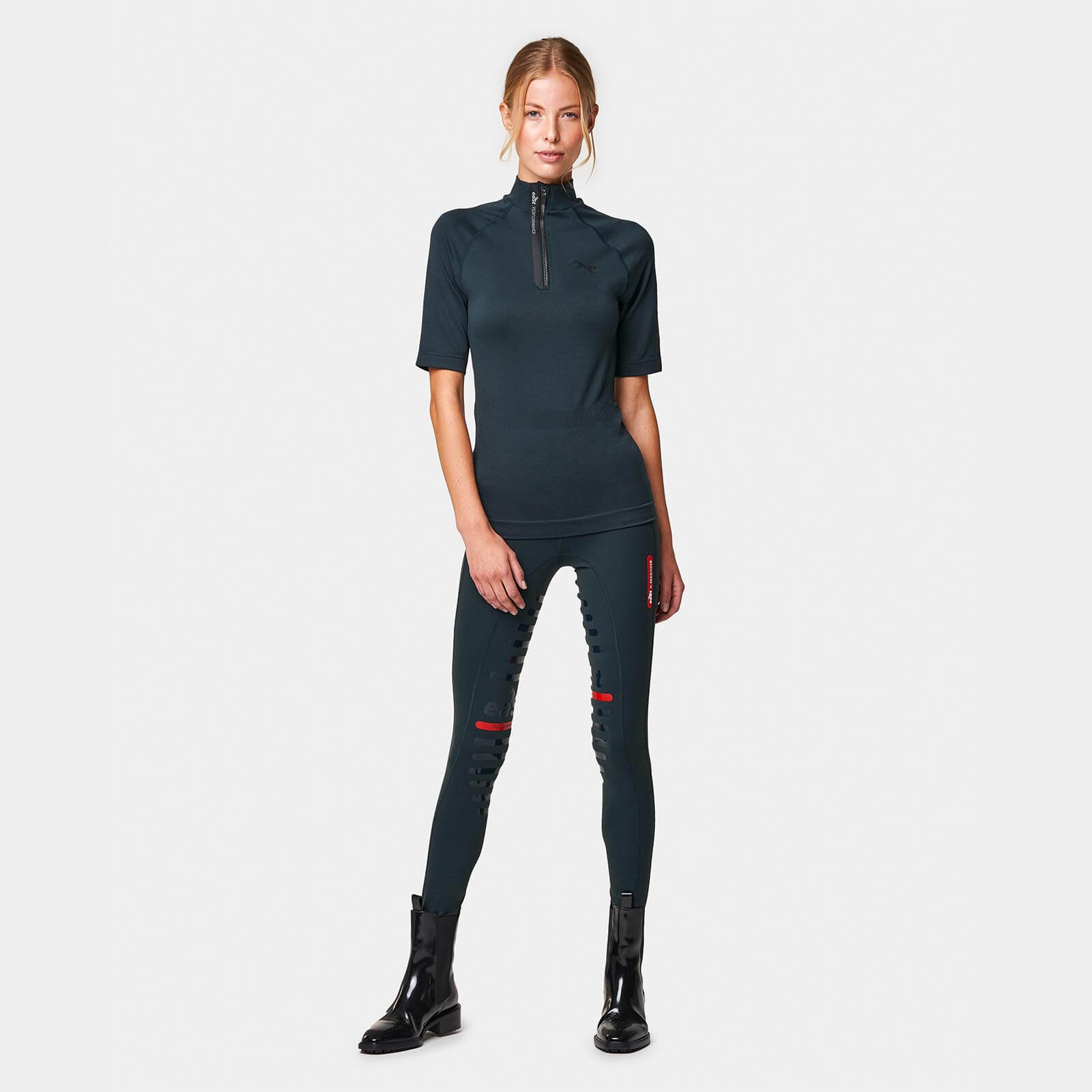 Mit der innovativen 3D-Rundstrick-Technologie bietet das Shirt unvergleichliche Bewegungsfreiheit. Die Kombination aus 85% Nylon, 10% Polyester und 5% Elasthan sorgt für eine hervorragende Klimaregulierung und Feuchtigkeitstransport. Diese technischen Eigenschaften machen das Shirt zum idealen Begleiter für anspruchsvolle Reitsportaktivitäten.
