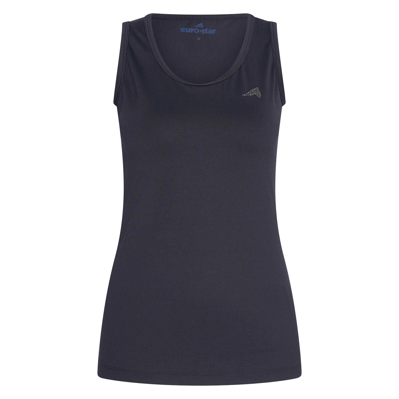 Das Top Damen Singlet ESEnya FS 2023 besticht durch seine moderne, taillierte Passform und die tiefblaue Navy-Farbe. Die strassbesetzten Details, wie der Pferdekopf auf der Brust und das Euro-Star-Motiv auf der Rückseite, verleihen dem Top eine edle Note. Diese stilvollen Akzente machen es zu einem Blickfang auf jedem Reitturnier und in der Freizeit.
