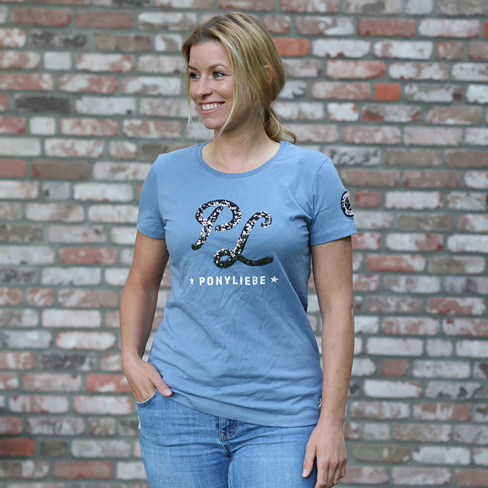 Shirt Damen Abby Kurzarmshirt von Ponyliebe ist mehr als nur ein Kleidungsstück; es ist dein stilvoller Begleiter für warme Tage. Mit seinem angenehmen, leichten Stoff und modischen Glitzerdetails verbindet es Komfort mit einem Hauch von Glamour – perfekt für den Alltag oder den Reitausflug.