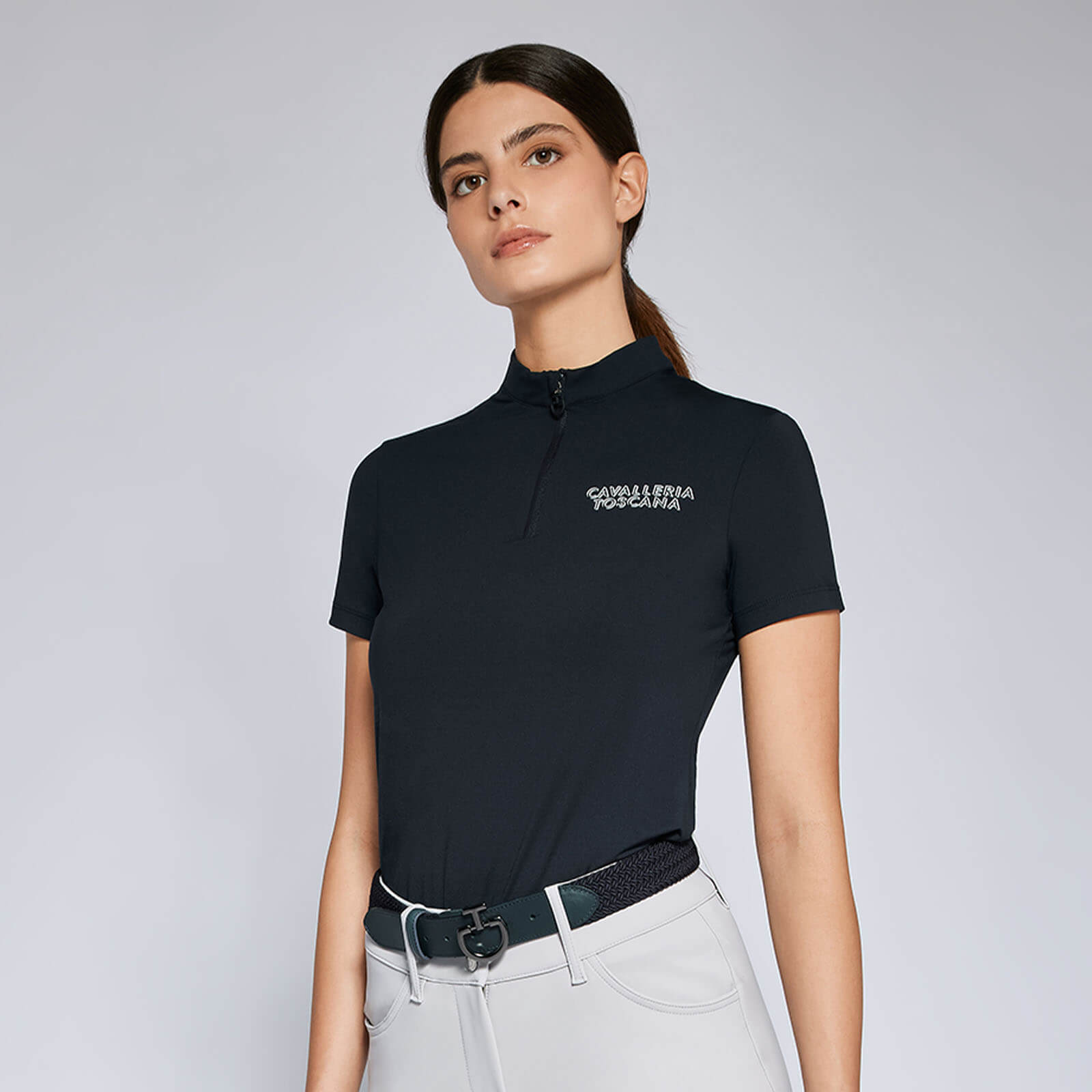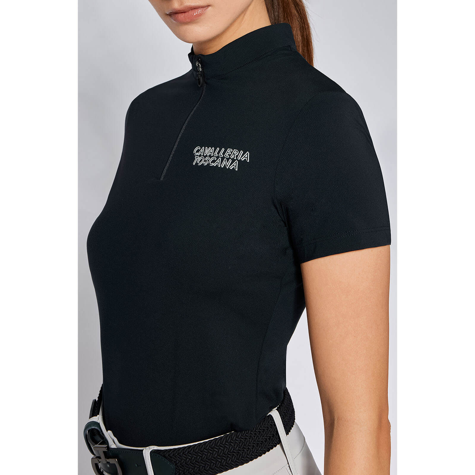 Shirt Damen CT Jersey S/S Training Zip Polo FS 2024 von Cavalleria Toscana kombiniert Eleganz und Funktionalität in einem stilvollen Design. Dieses kurzärmelige Funktionsshirt bietet dir optimalen Komfort und Bewegungsfreiheit für deine Reitabenteuer. Lass dich von der perfekten Verbindung aus technischem Material und modischem Chic überzeugen!