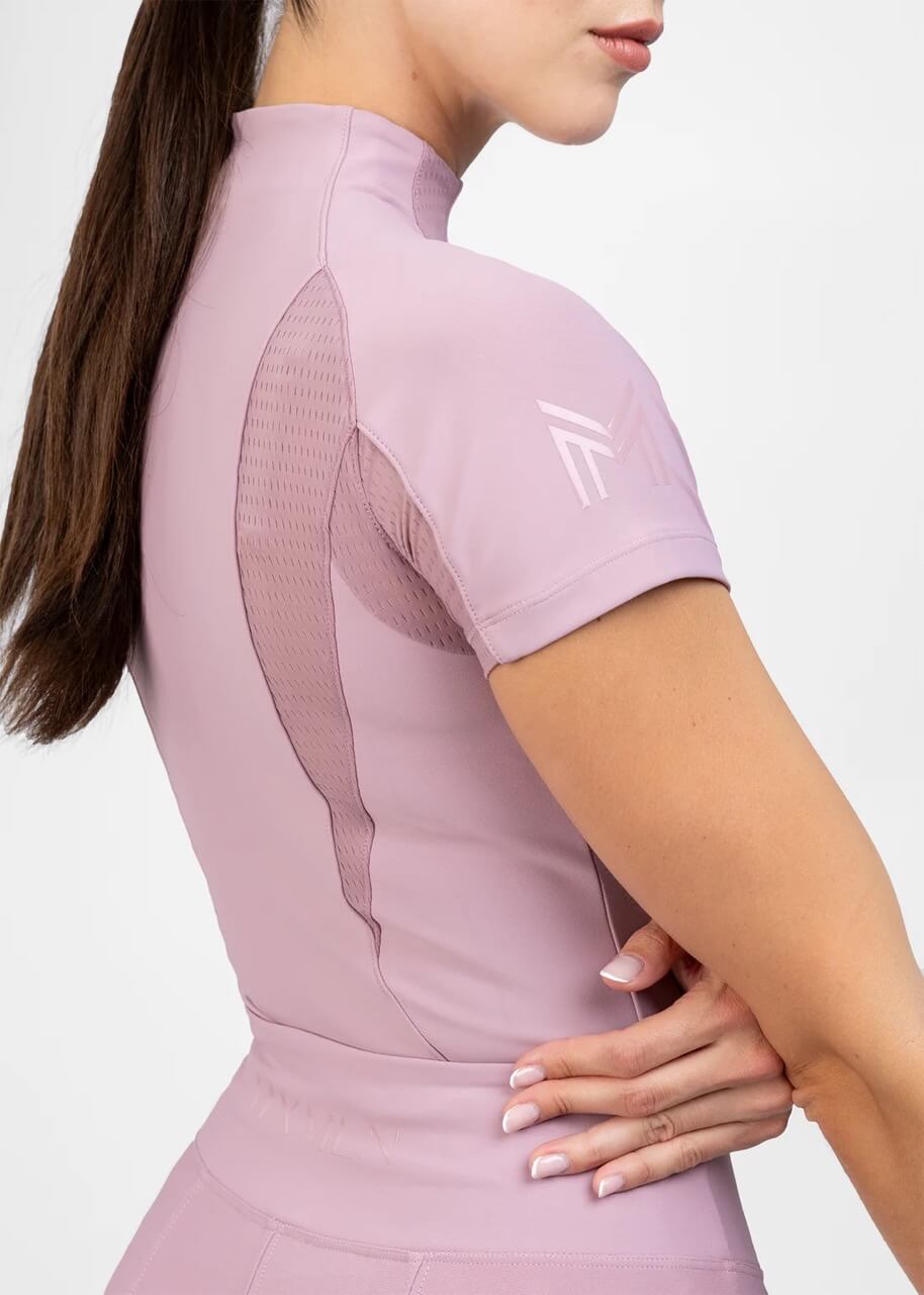 Das Funktionsshirt überzeugt durch sein klares und modernes Design. Erhältlich in verschiedenen stilvollen Farben wie Navy, Black, Burgundy und Mauve, passt es zu jeder Reitsport-Garderobe. Die V-förmige Kontur auf Vorder- und Rückseite sorgt nicht nur für eine ästhetische Optik, sondern auch für eine hervorragende Passform, die deinen Bewegungen schmeichelt.