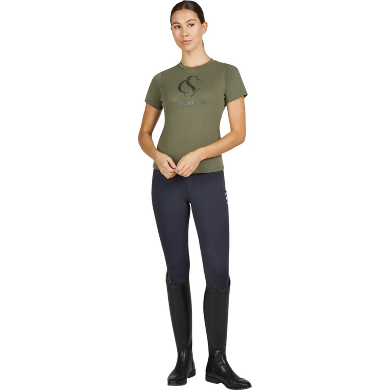 Das T-Shirt Damen Classic Sports FS 2025 Shirt beeindruckt mit seiner modernen Ästhetik in der Trendfarbe Dusty Olive oder dem zeitlosen Steel Blue. Der klassische Rundhalsausschnitt verleiht dem Shirt einen zeitlosen Look, der sich mühelos mit Reithosen oder Jeans kombinieren lässt. Das dezente Glitzer-Emblem und das Eskadron-Label setzen stilvolle Akzente, die deinen Look veredeln.
