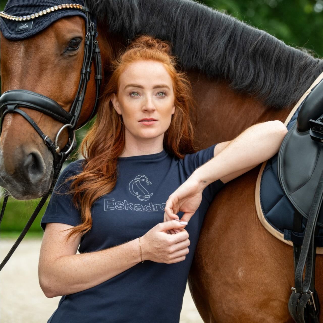 Das Kollektions-Emblem ist beidseitig platziert und unterstreicht den typischen Eskadron-Style. Dadurch wirkt das Shirt hochwertig und klar, ohne überladen zu sein. Es lässt sich ideal unter Westen, Hoodies oder Jacken tragen und bleibt dabei optisch präsent. In Kombination mit Reithose, Leggings oder Jeans entsteht schnell ein stimmiger Look. Für den Layering-Look im Übergang ist es ebenso geeignet wie für warme Tage im Stall. So unterstützt dich das Shirt in vielen Situationen rund um Pferd und Reiten.