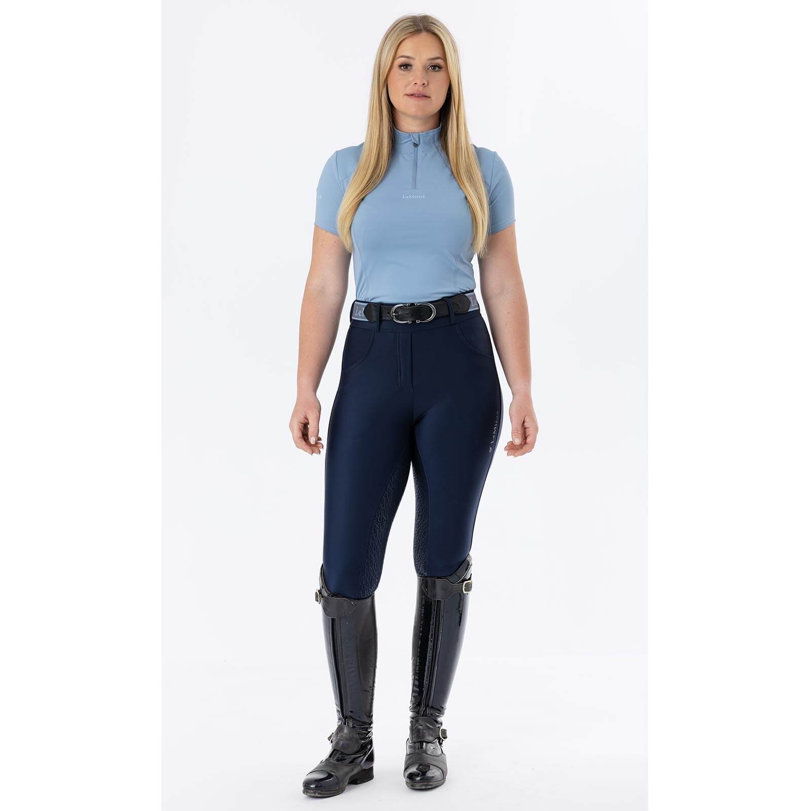Die Reitleggings in stilvollem Navy bestechen durch ihr elegantes Erscheinungsbild, das jedem Reitoutfit eine edle Note verleiht. Dank der nahtlosen Verarbeitung und des elastischen Materials wird dir maximale Bewegungsfreiheit gewährt, während das schlichte Design vielseitig kombinierbar ist.