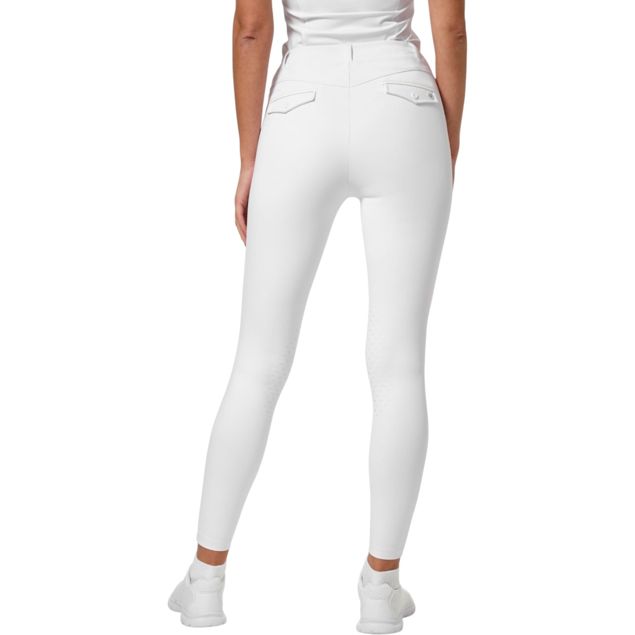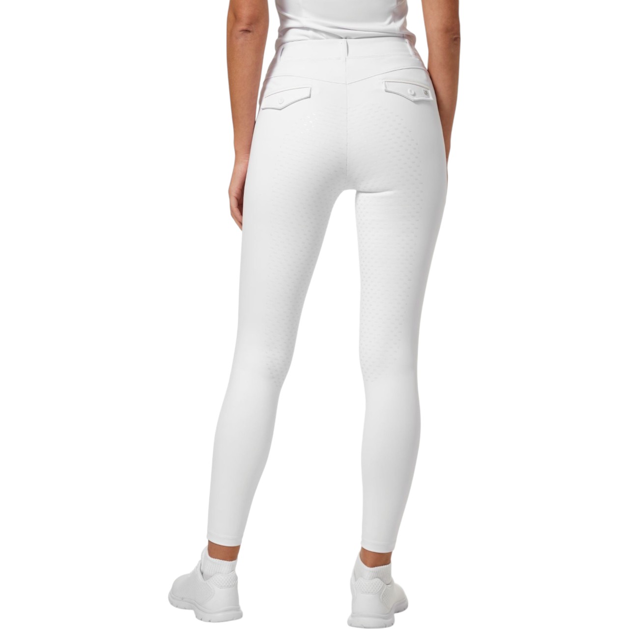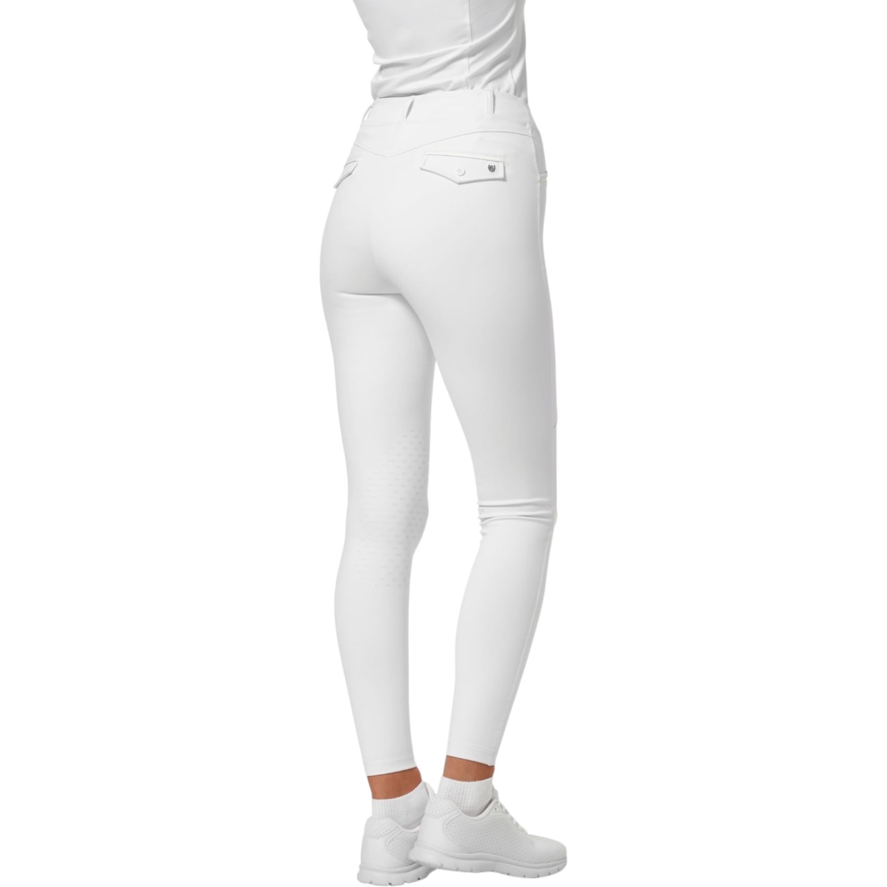 Mit ihrem modernen Schnitt und eleganten Weißton passen die Leggings perfekt zu verschiedenen Reitoutfits. Die integrierten Handytaschen sind nicht nur stilvoll platziert, sondern auch funktional dimensioniert. Dezente Markendetails aus Metall setzen edle Akzente, ohne aufdringlich zu wirken. Das schmutzabweisende Finish erleichtert dir die Pflege im Alltag. Ob im Stall, beim Training oder auf dem Turnier – diese Leggings erfüllen höchste Ansprüche an Stil und Leistung. Hergestellt aus einem hochwertigen, weichen Funktionsmaterial bieten sie ein luxuriöses Tragegefühl bei jeder Witterung.