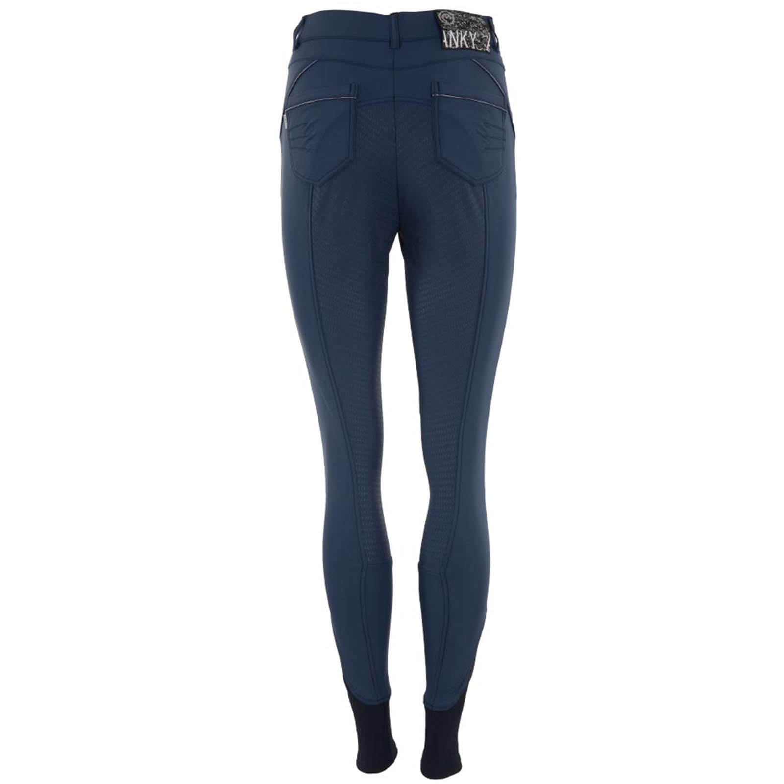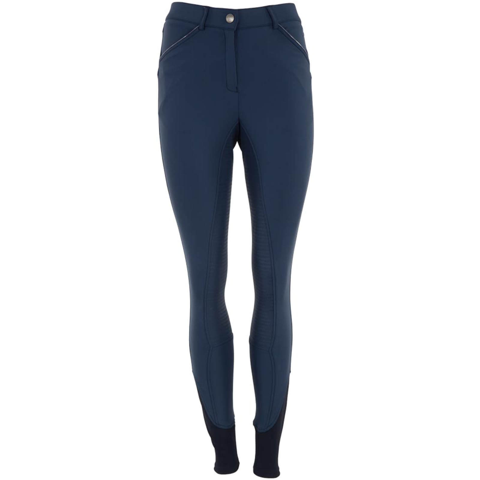Die Reithose Damen Full-Grip Radiance XR17105 besticht durch ihre schmale Passform und das edle Navy-Design. Dezente Falten an den Gesäßtaschen verleihen der Rückansicht einen eleganten Touch. Vorne findest du praktische Einschubtaschen, während die aufgesetzten Taschen hinten nicht nur stylisch sind, sondern auch zusätzlichen Stauraum bieten.